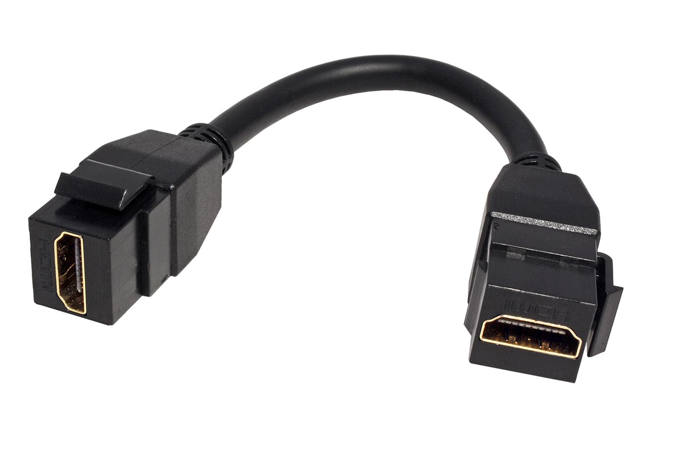 Keystone spojka HDMI kabelů s keystone moduly na obou koncích.