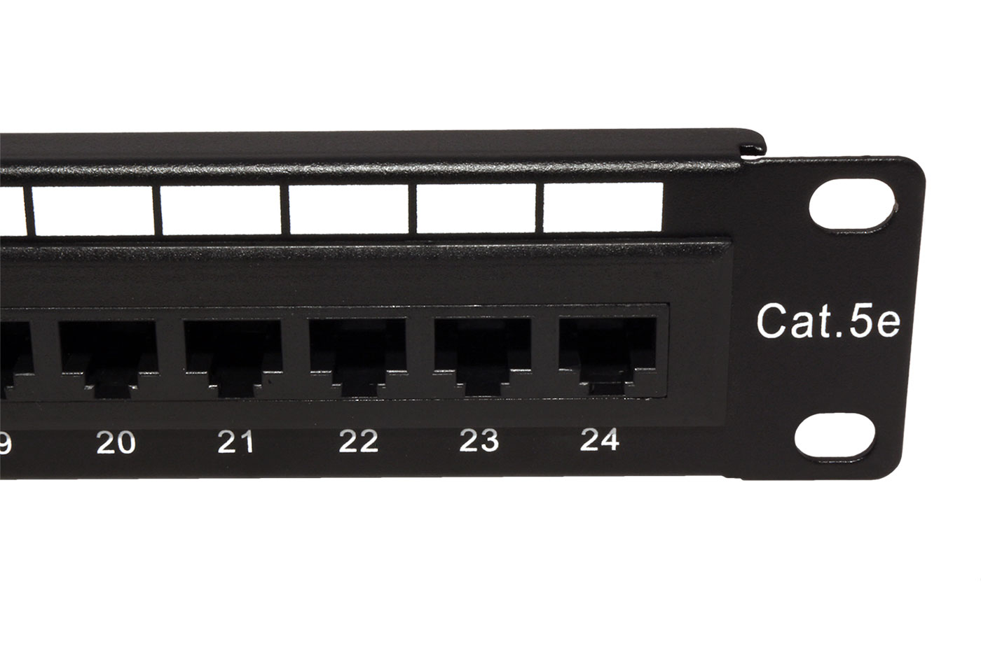 Nestíněný, 24-portový patchpanel kategorie 5e pro montáž do 19“ rozvaděče (výška 1U).