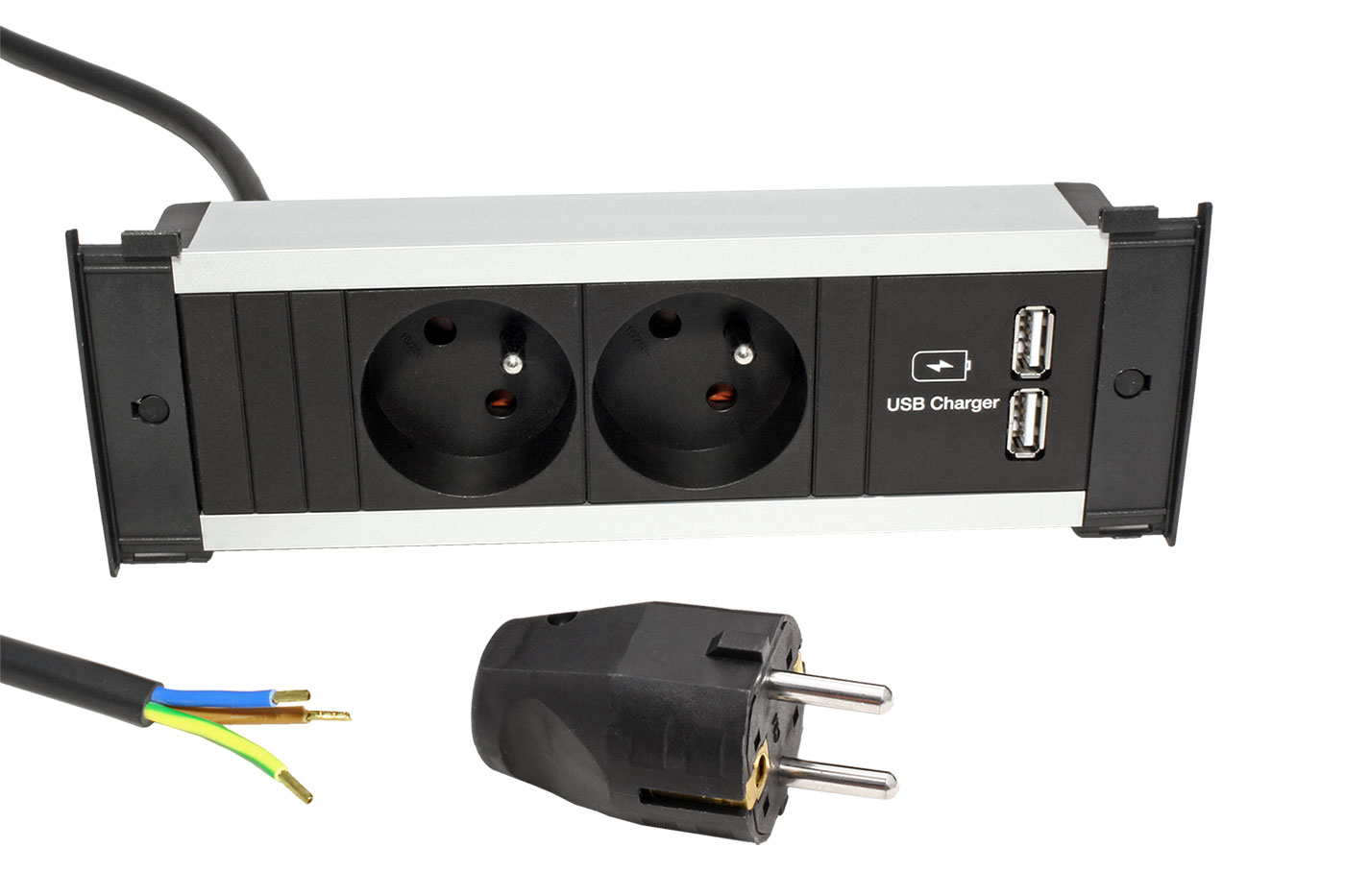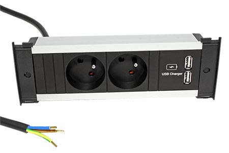 Stylový kompaktní box určený pro montáž do desky stolu, nábytku, nebo duté stěny (sádrokarton, OSB…). Box se 2 napájecími zásuvkami CZ a napájecím modulem 15W (2x USB A).