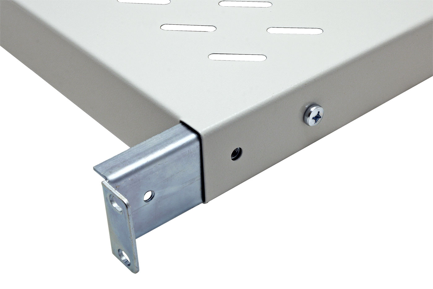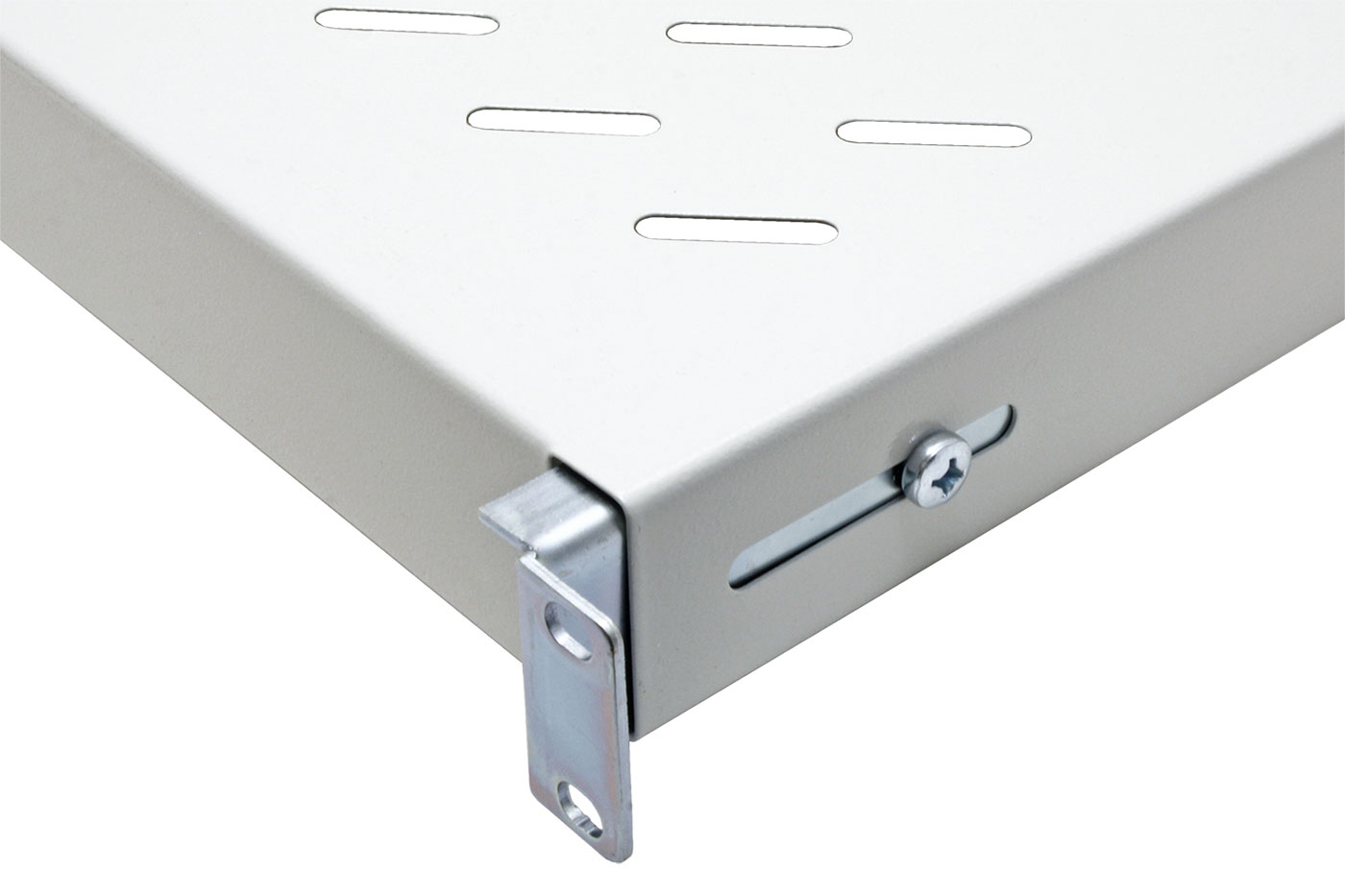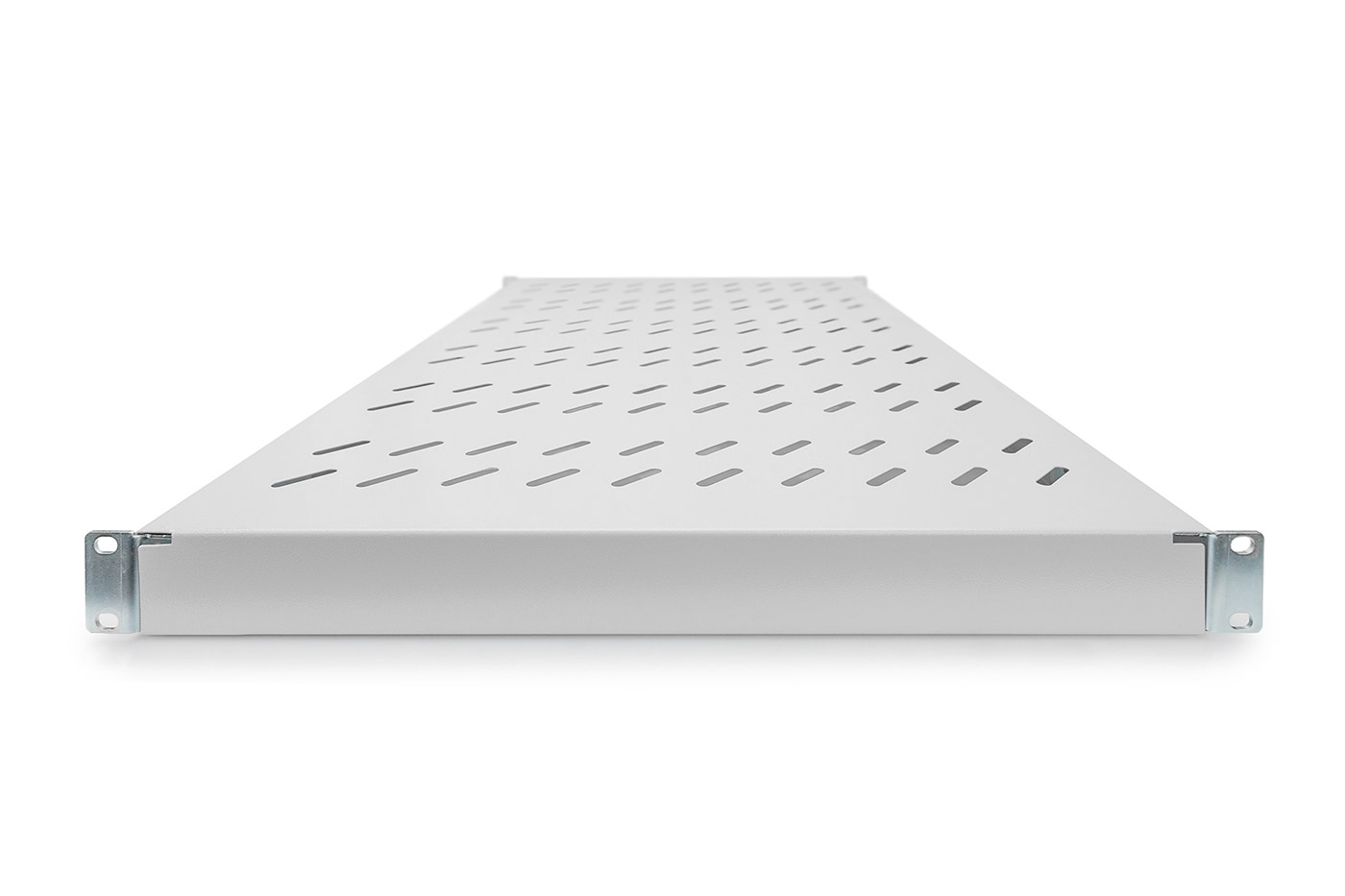 19" 1U pevná police hluboká 700mm s uchycením vpředu a vzadu.