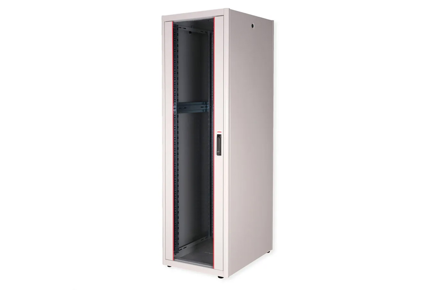 Síťový stojanový rozvaděč 42U řady Basic, 600 x 800mm se skleněnými dveřmi.