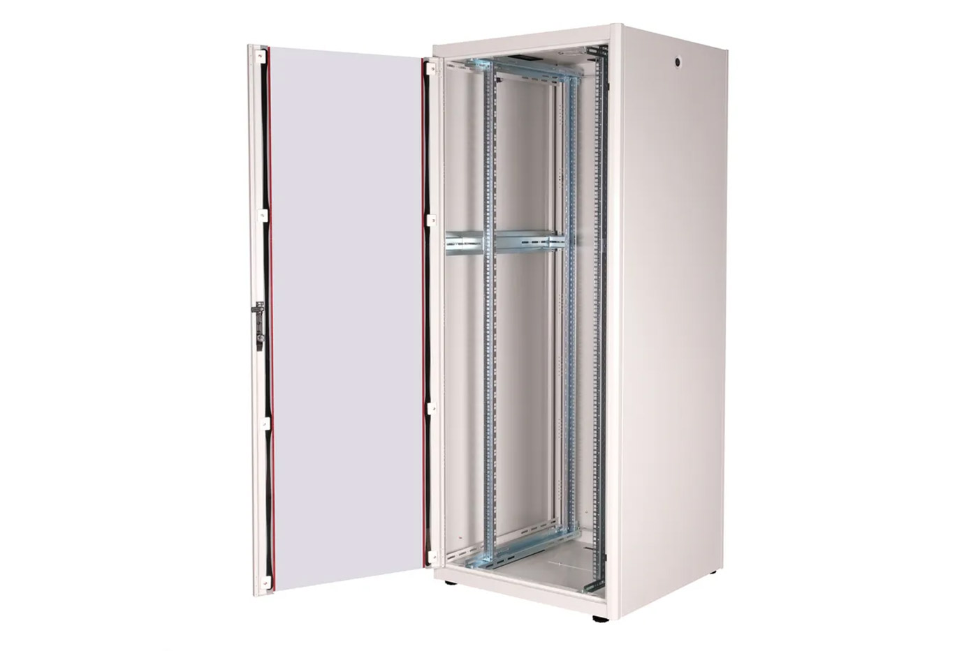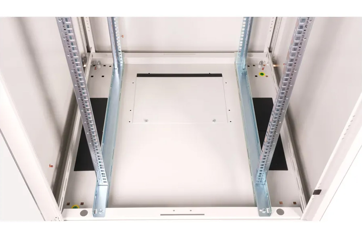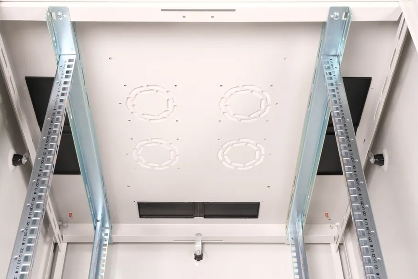 - 4x (2 páry) pozinkované 19" vertikální lišty, které lze hloubkově nastavit