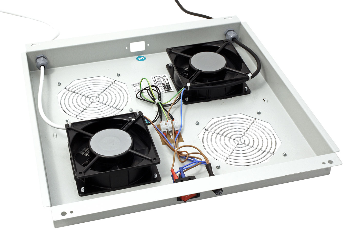Ventilační jednotka zajišťující aktivní chlazení rozvaděčů. Je určena především pro serverové a síťové rozvaděče ROLINE řady Pro. Jednoka je vybavena termostatem pro přesnou regulaci teploty uvnitř rozvaděče a vypínačem.