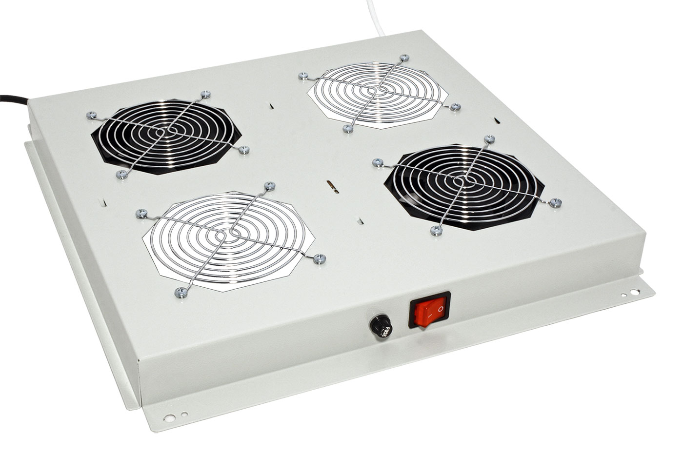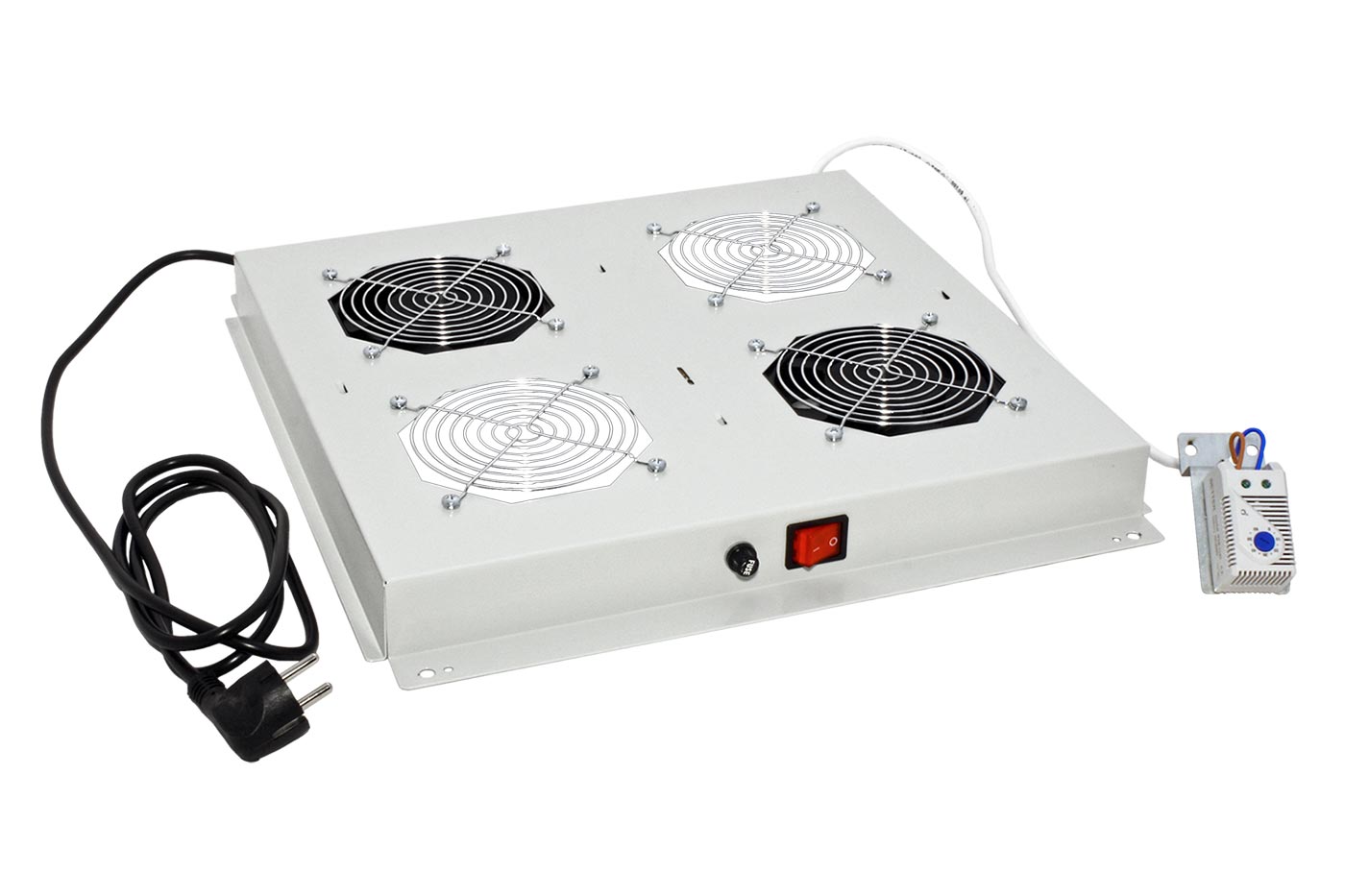 Stropní ventilační jednotka s termostatem pro serverové a síťové rozvaděče, pro 4 ventilátory, 2 ventilátory osazeny.