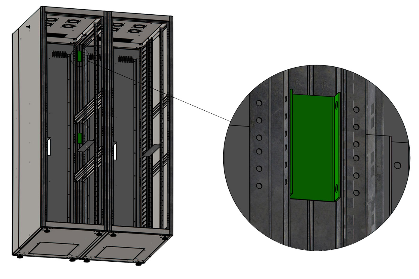 Sada pro pevné spojení sousedních rozvaděčů.