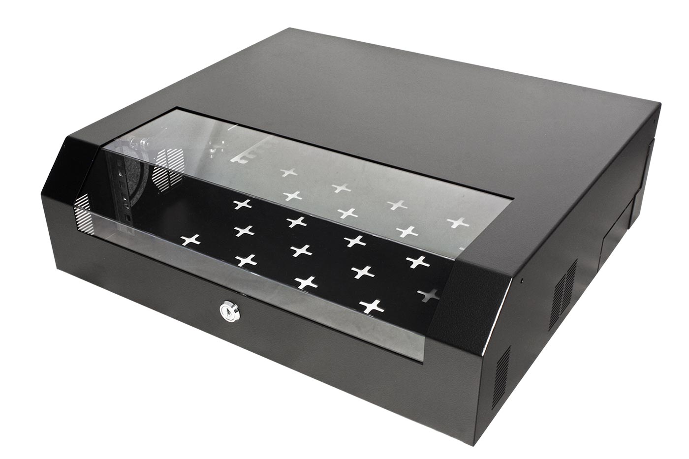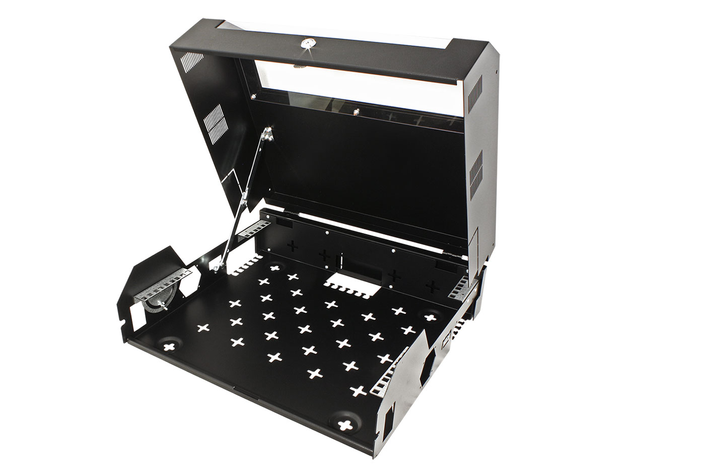 - 2 otvory na bocích pro ventilatory 60mm (rozteč montážních otvorů 50 x 50mm)