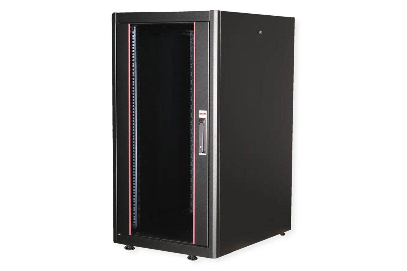 Síťový stojanový rozvaděč 22U řady Basic, 600 x 800mm se skleněnými dveřmi.
