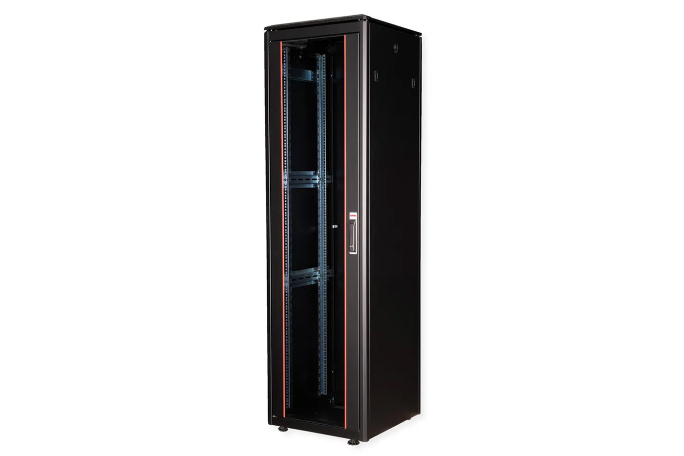 Síťový stojanový rozvaděč 47U řady Pro, 600 x 600mm se skleněnými dveřmi.