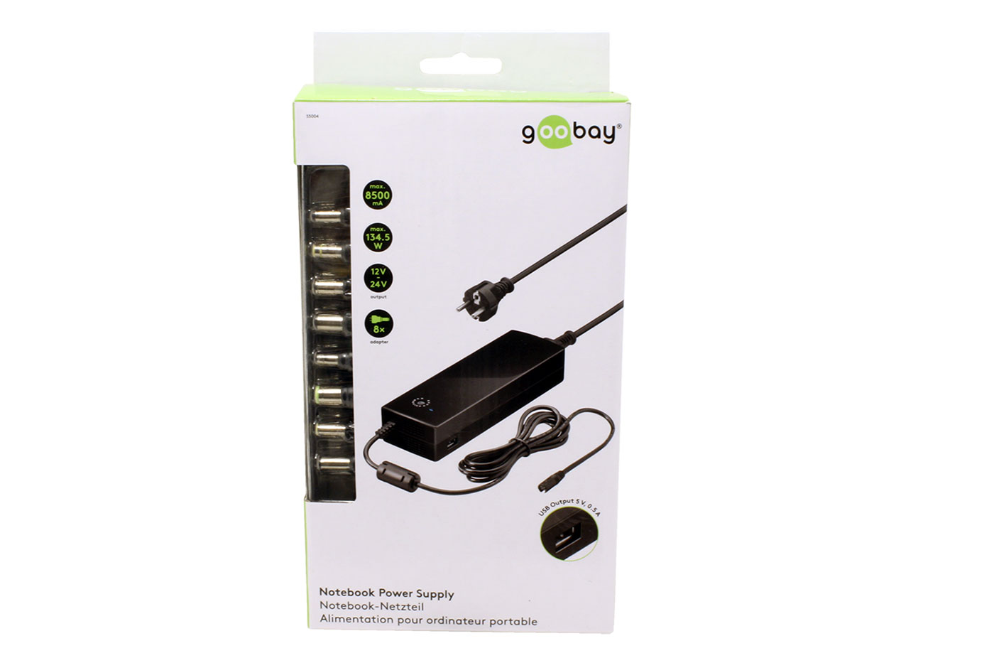 Univerzální napájecí adaptér pro notebooky.