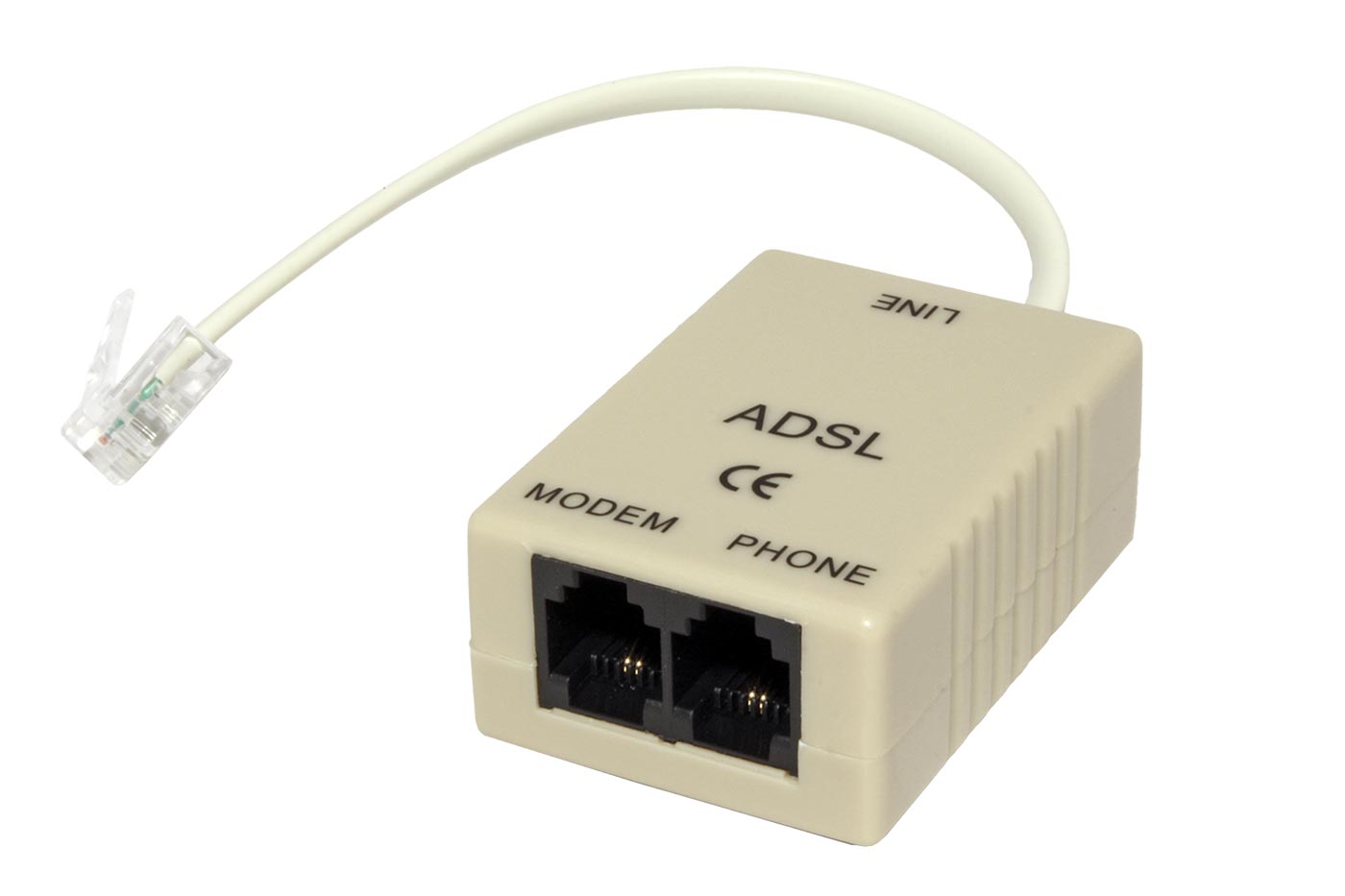 Adaptér pro odbočení ADSL signálu z analogové nebo ISDN linky.