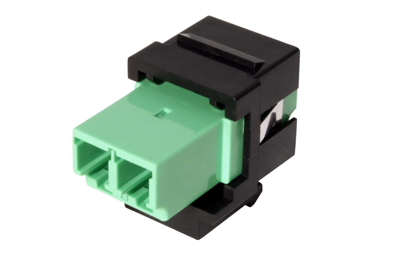 Spojka / průchodka pro single mode optické kabely s konektory LC. Pro dvě vlákna (duplex). Keystone.