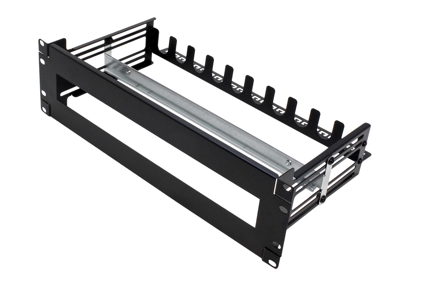 DIN lišta do 19" rozvaděče v držáku s výškou 3U.