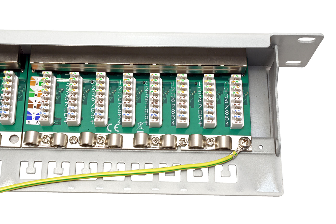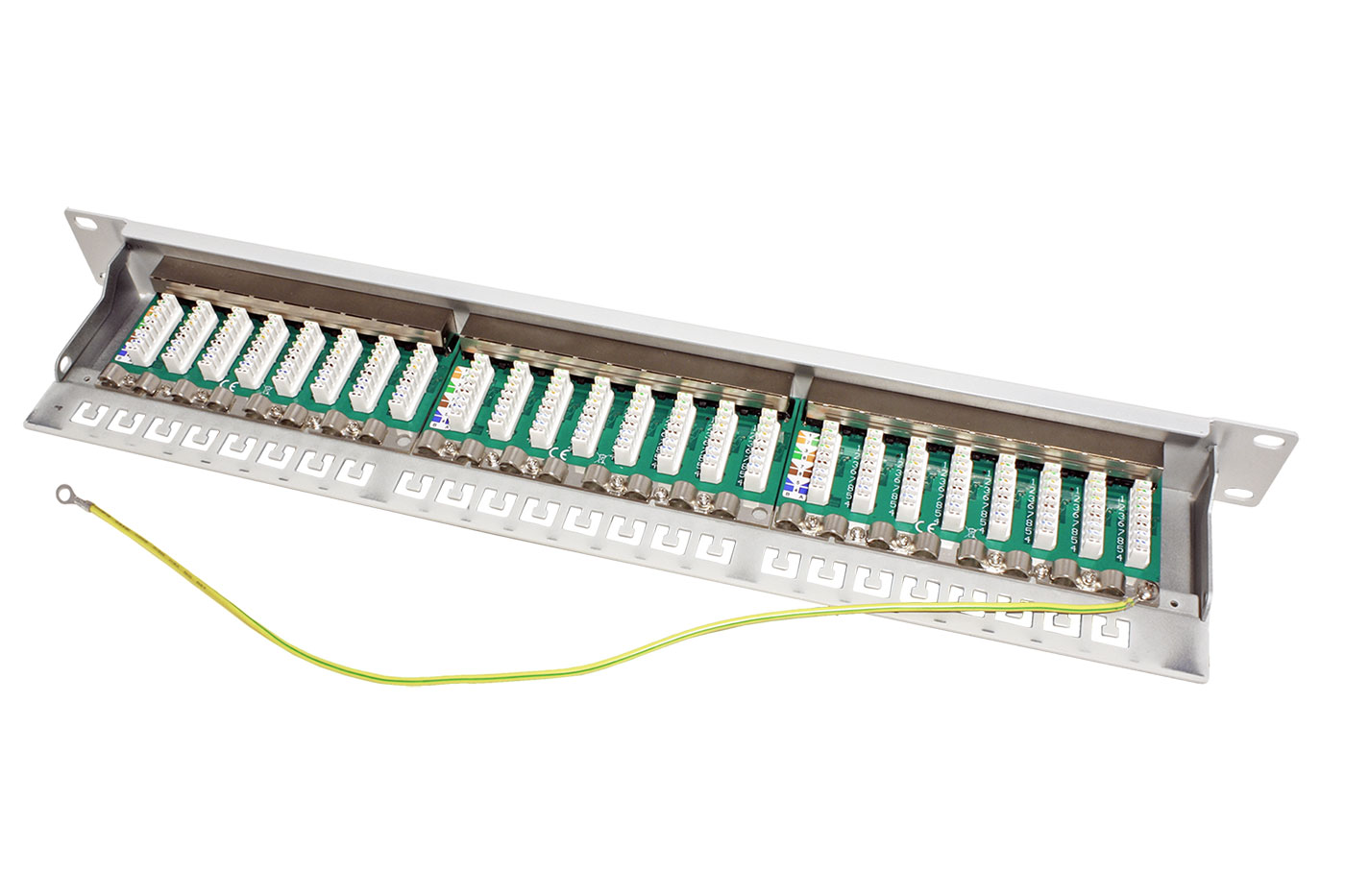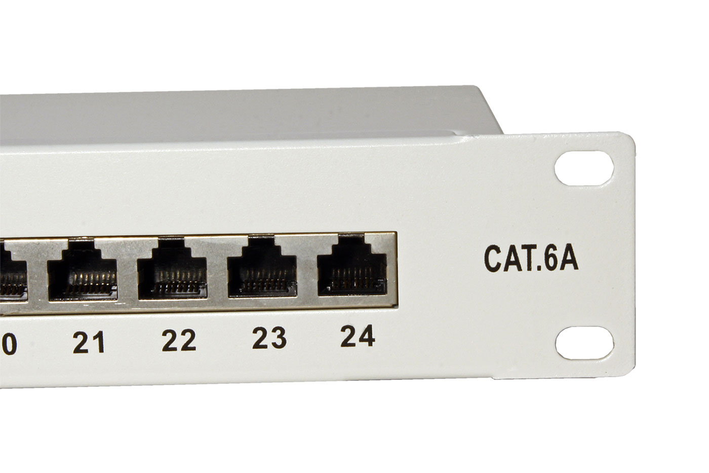 Stíněný, 24-portový patchpanel kategorie 6a pro montáž do 19“ rozvaděče (výška 1U).