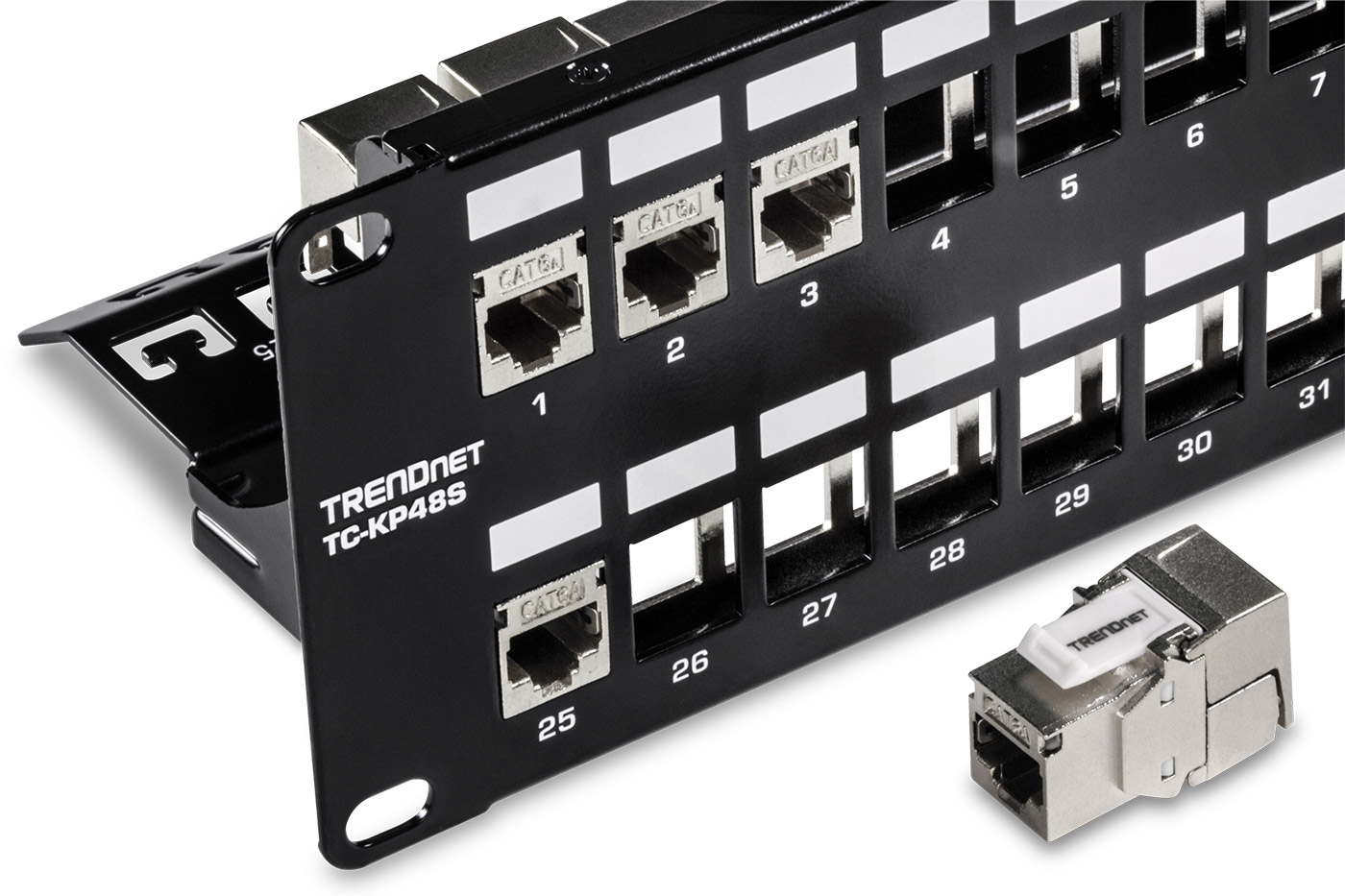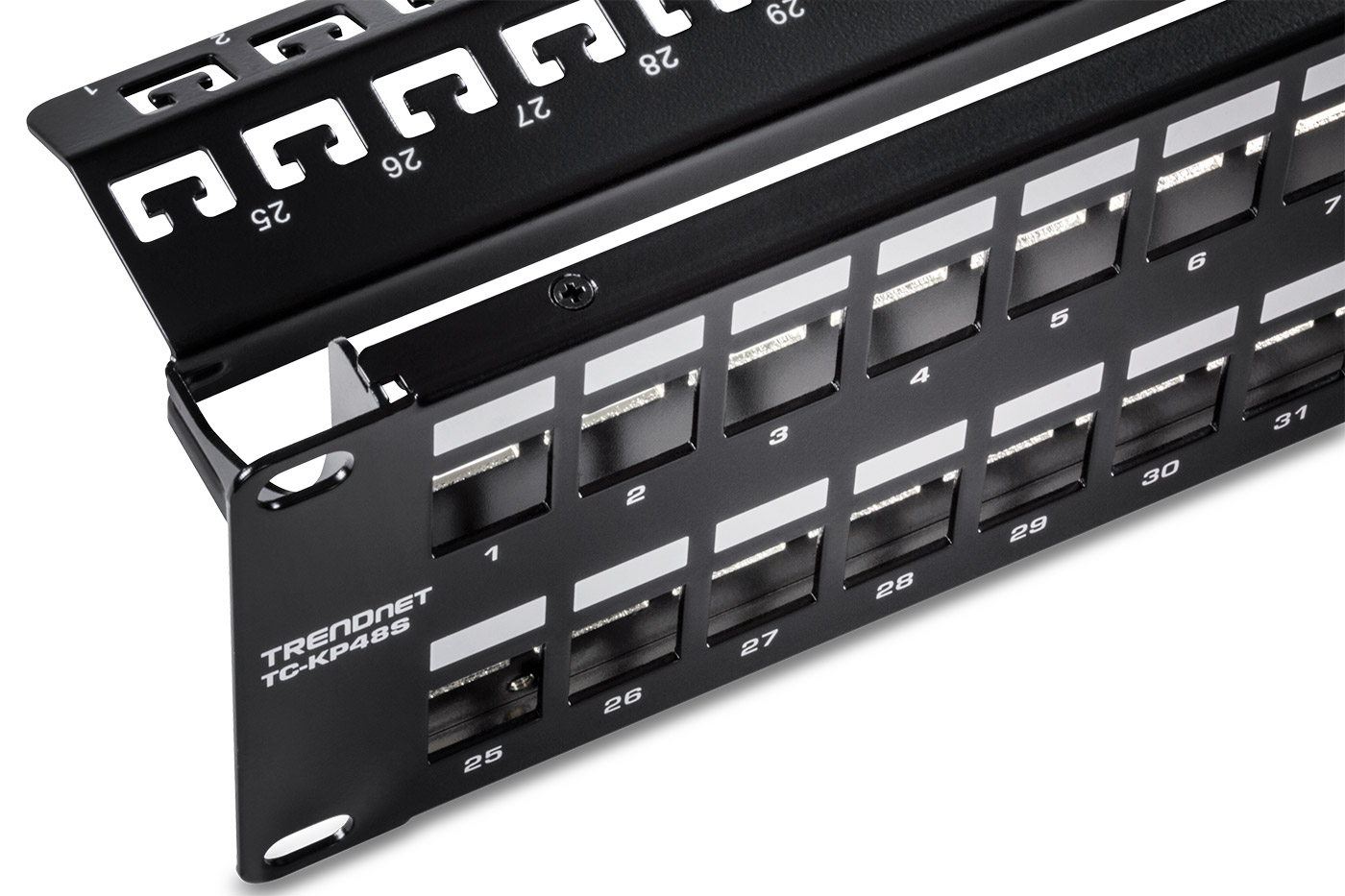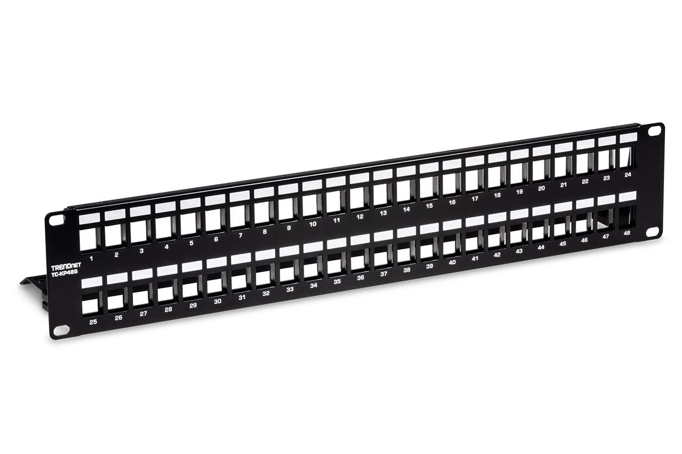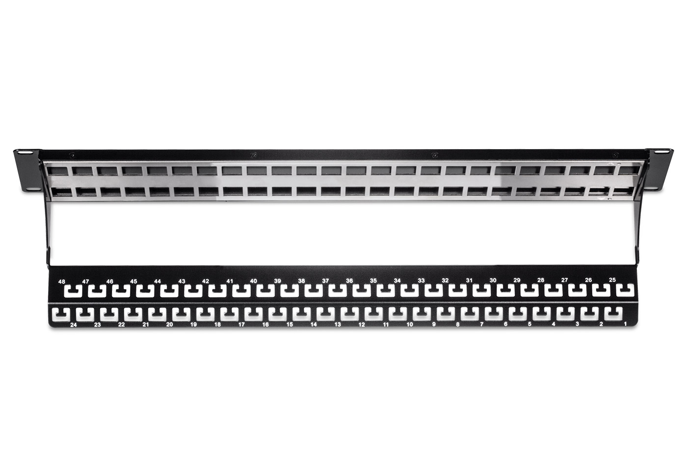 Rám patchpanelu pro osazení modulů keystone, stíněný, 48 pozic (výška 2U).