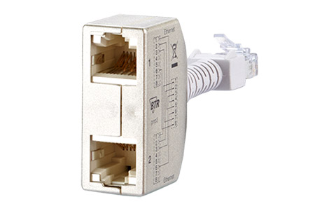 Adaptér pro sdílení kabelů pro současný provoz dvou 4-drátových služeb (12x ethernet), přes 8-drátovou instalační linku. Použití v páru: jeden adaptér do zásuvky, jeden adaptér do rozbočovače.