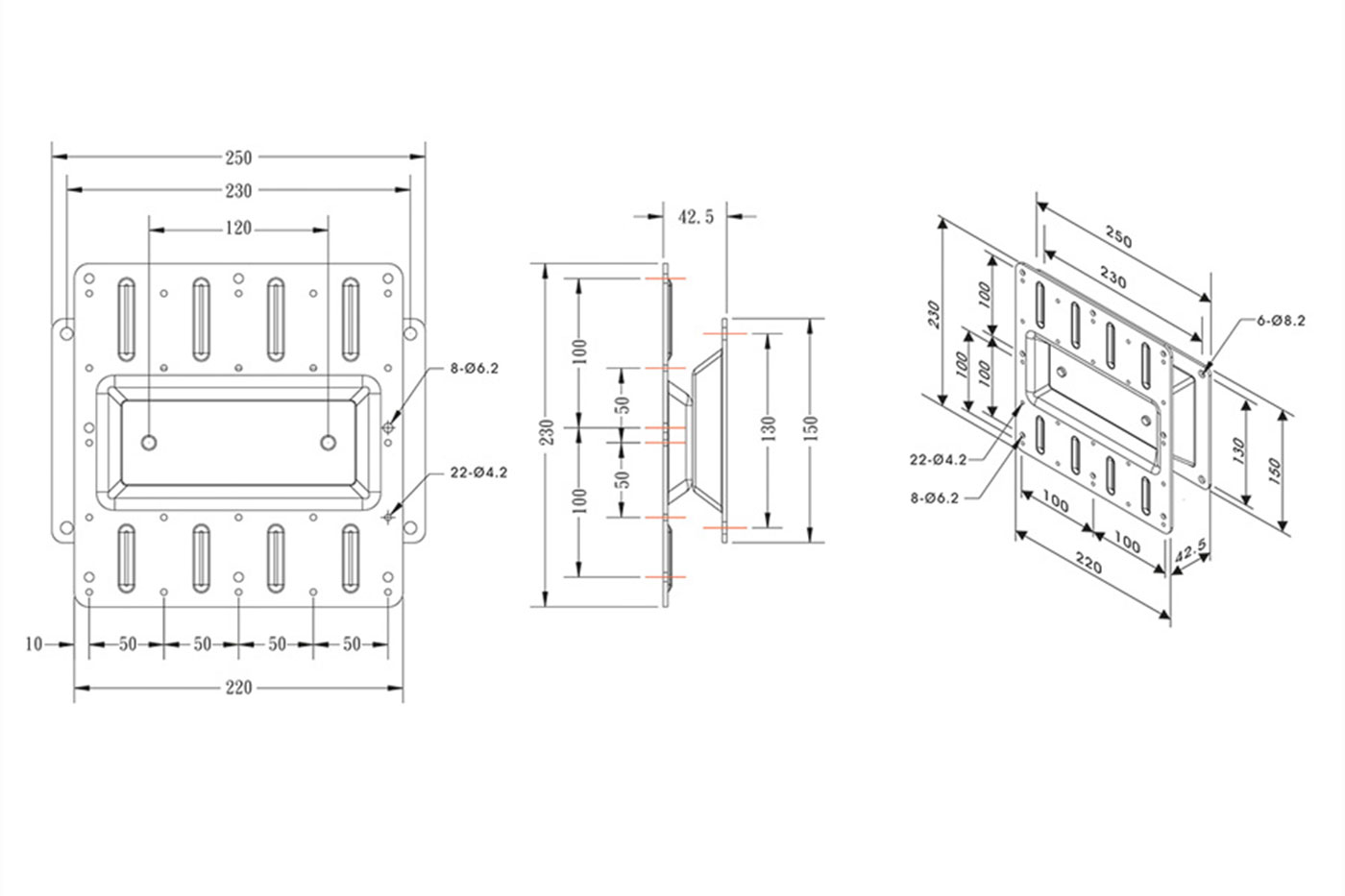 část na zeď: 250 x 150 x 22mm