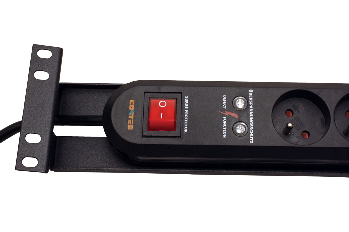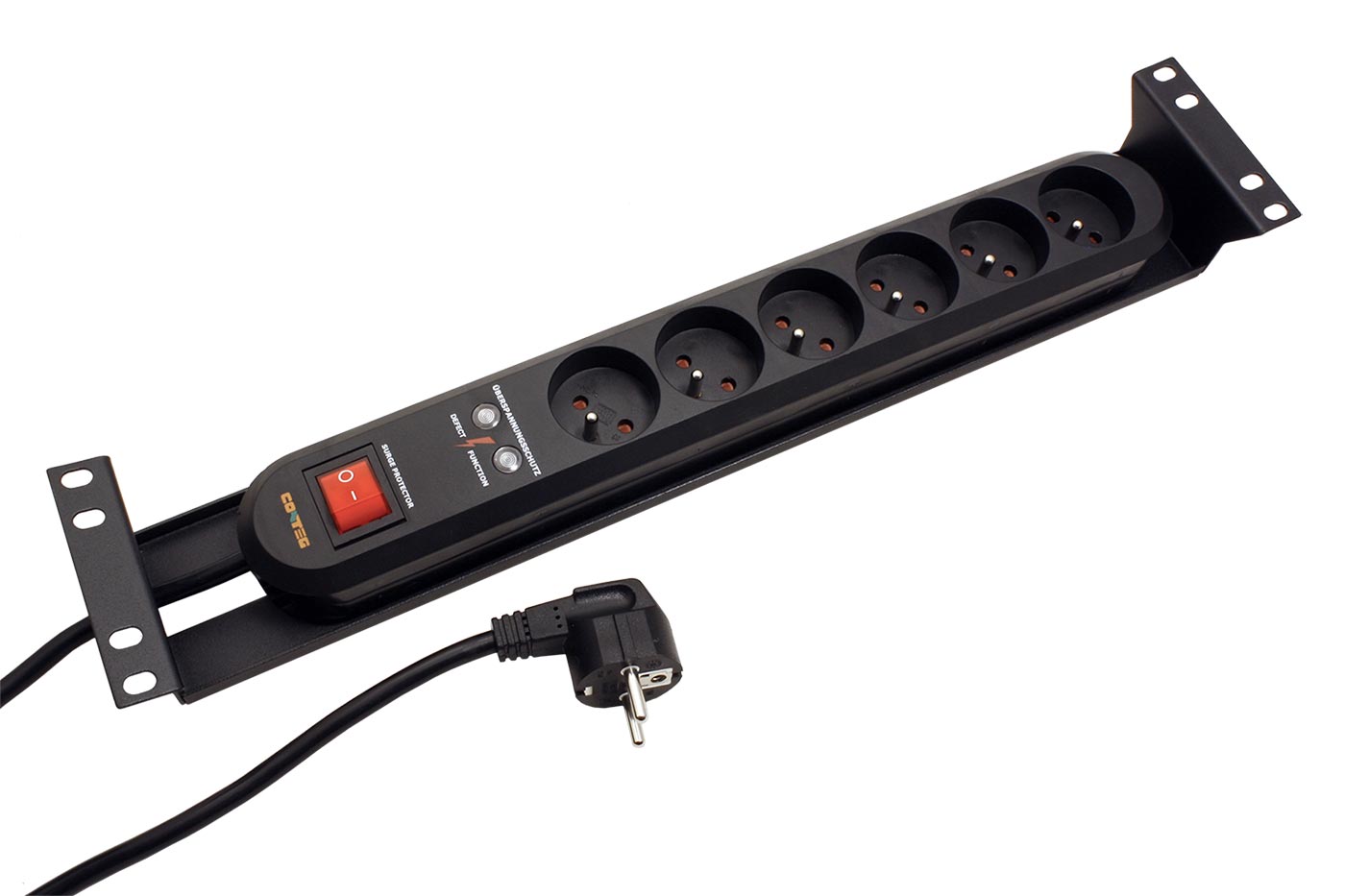 Šestinásobná zásuvka (CZ) s přepěťovou ochranou, pro montáž do rozvaděče(výška 2U).