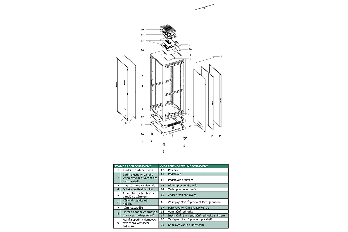 Stojanový rozvaděč 19", 45U, 600x800mm, výhodný poměr ceny, užitné hodnoty a kvality.