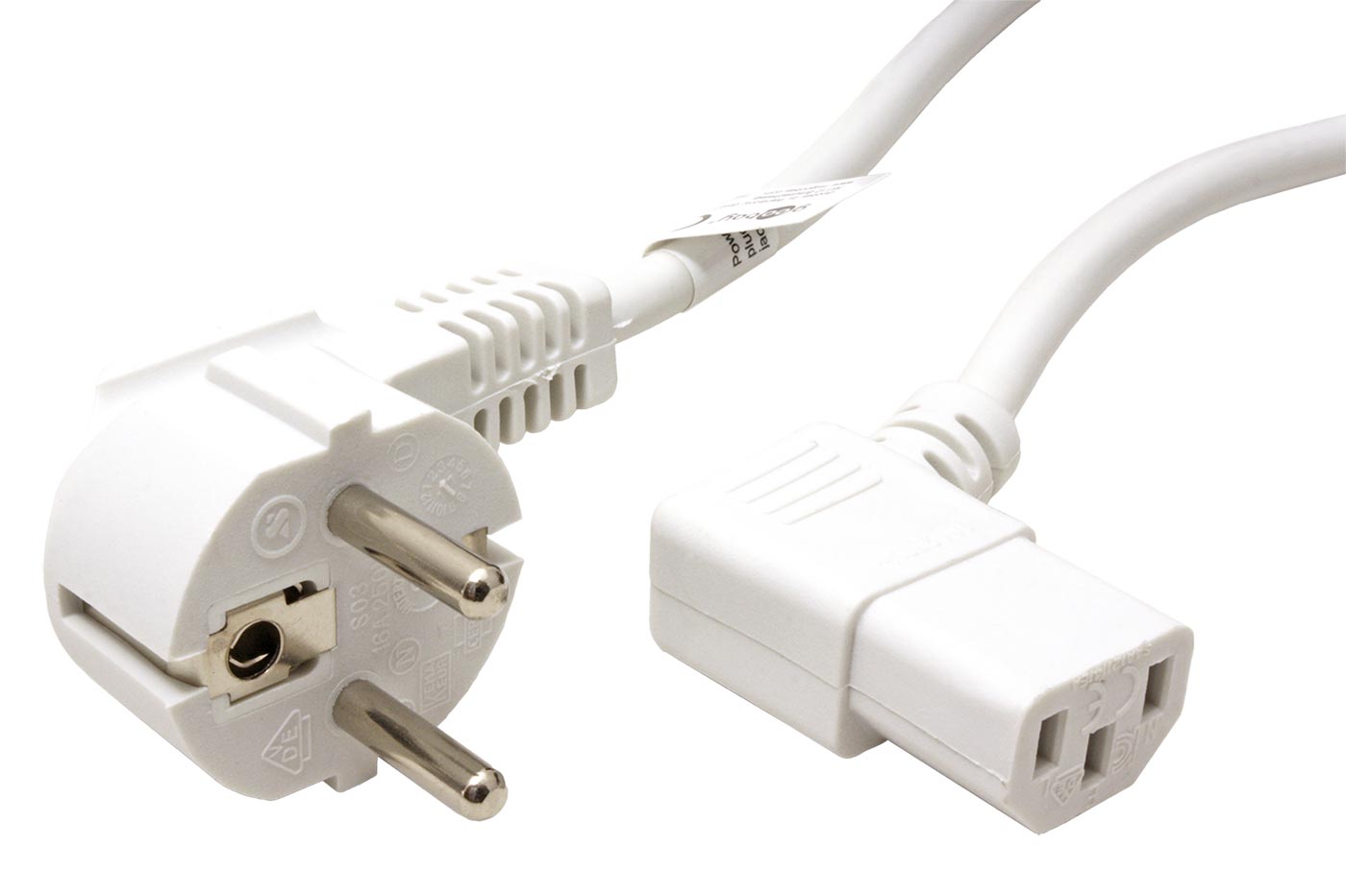 Pokud potřebujete zapojit zařízení k rozvodné síti se zásuvkou typu E nebo F (CZ, FR DE), použijte tento kabel. Na zařízení (standardní počítače, UPS…) musí být osazeny konektory IEC320 C14 (lichoběžník se svislými kontakty). Přístrojový konektor je lomený o 90° pro úsporu místa za připojeným zařízením.