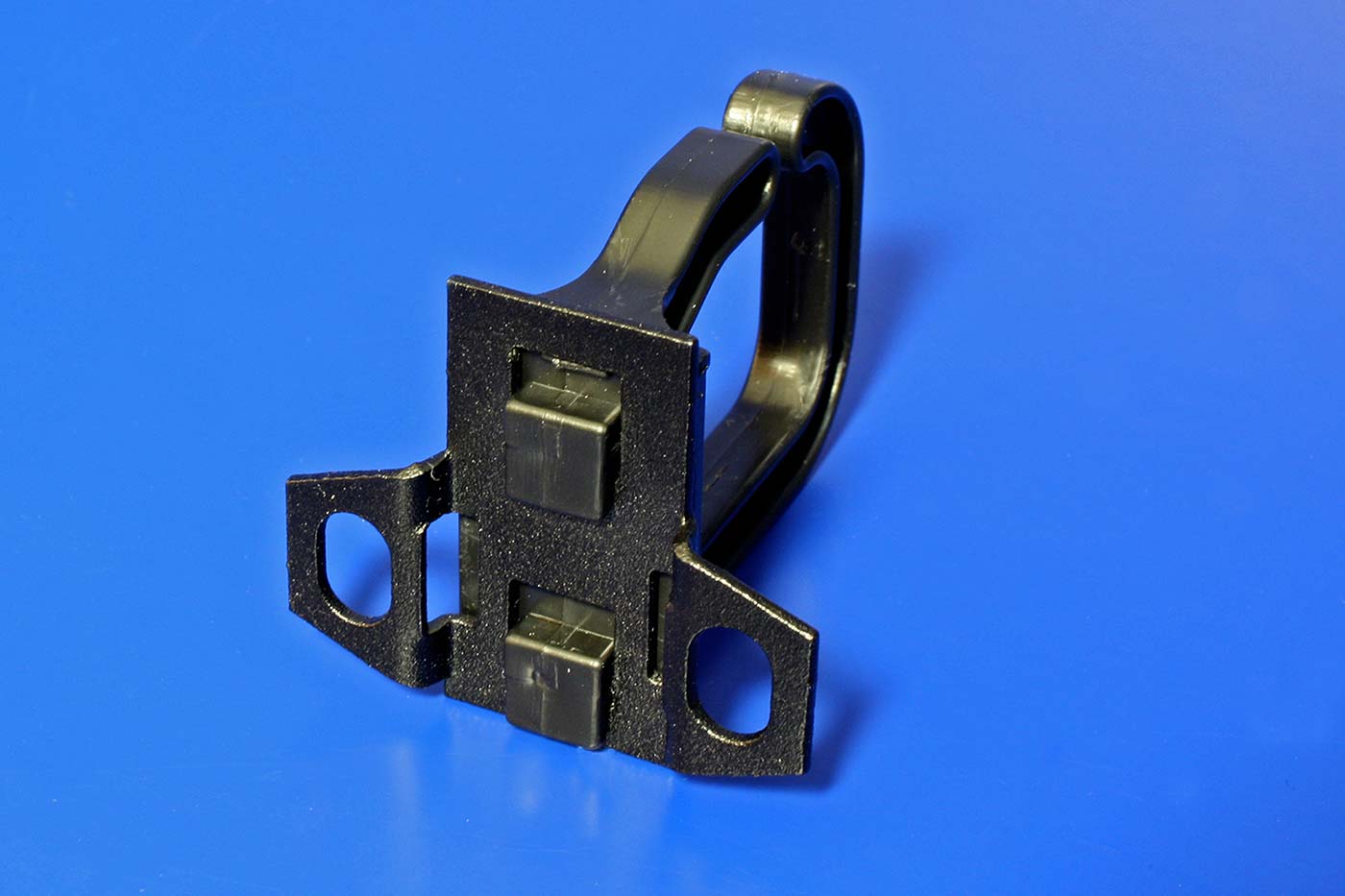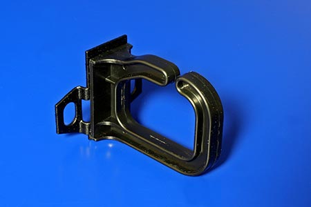Jednoduché oko s asymetrickým upevněním (montážní otvory na kraji oka), otevřené z boku.