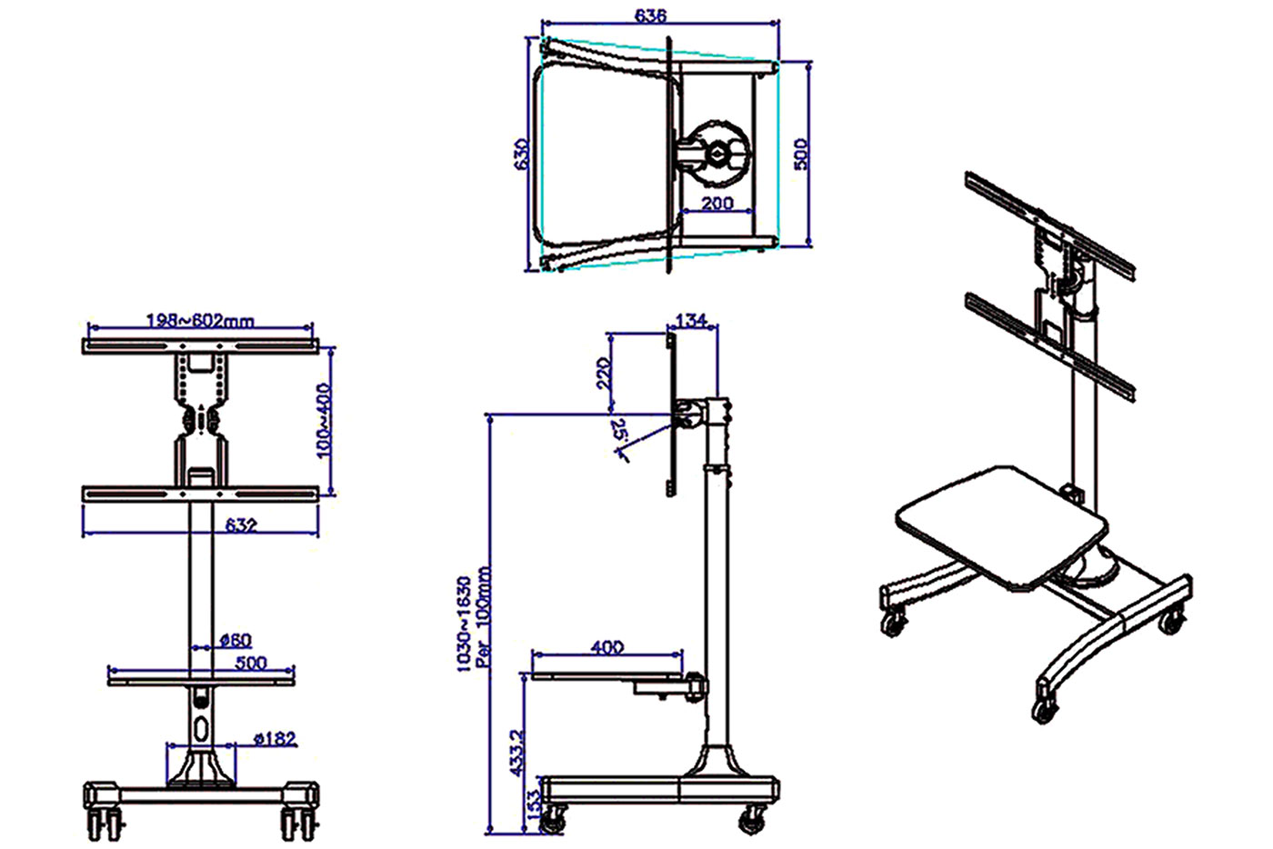 Pojízdný držák na LCD televizor nebo monitor s policí na přehrávač.