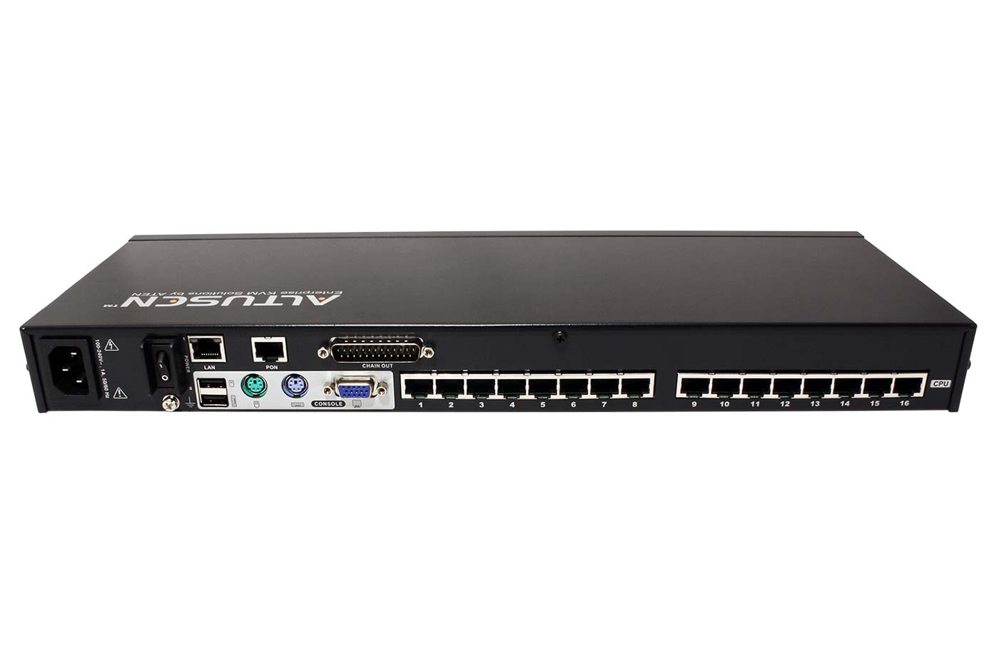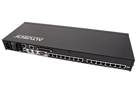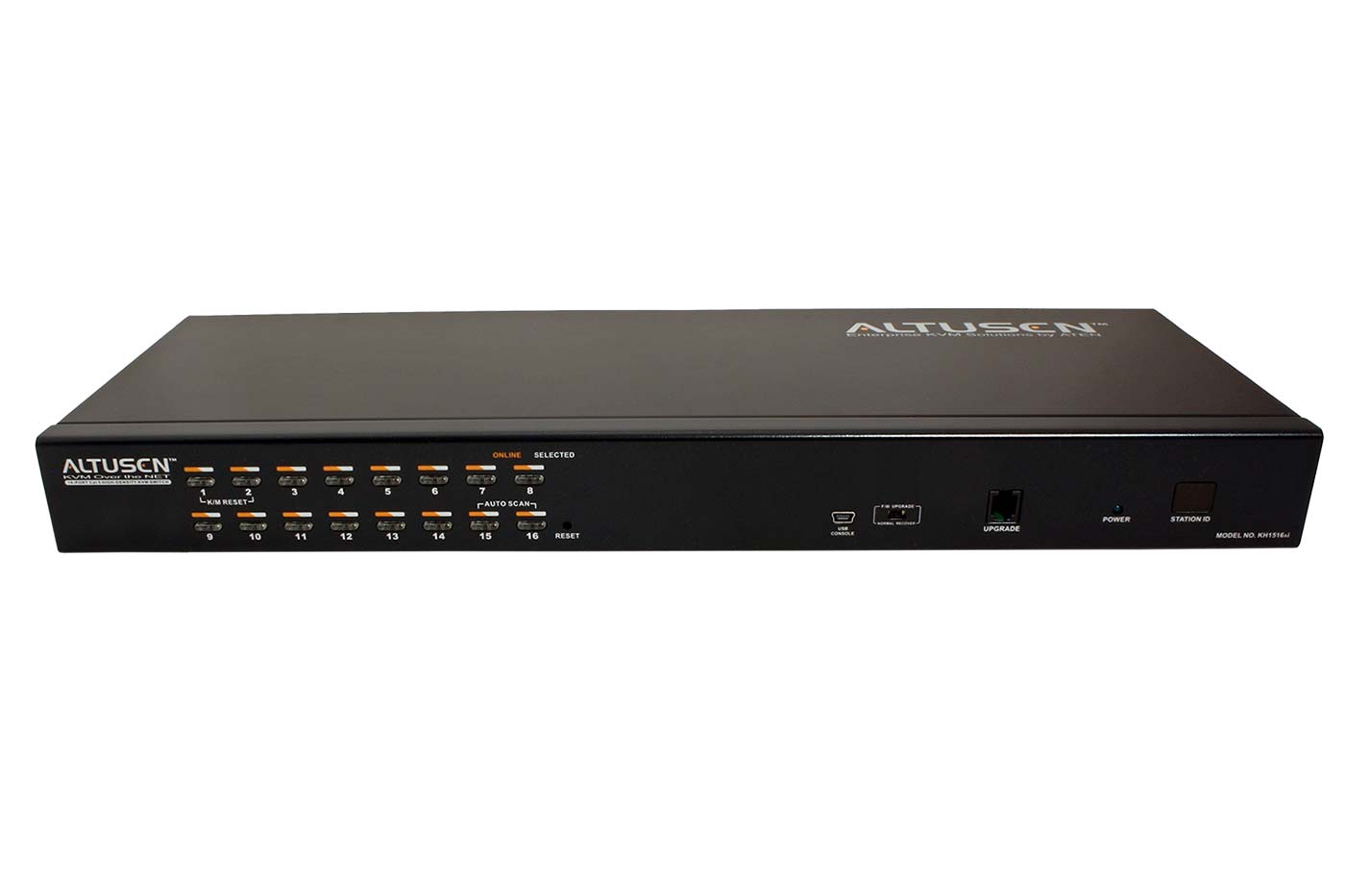 Přepínač pro ovládání 16 počítačů (klávesnice, video, myš) z jednoho stanoviště. Je možno připojit PC s USB i PS/2 klávesnicí (volí se použitím příslušného KVM modulu). USB konektor pro připojení notebooku jako konzole. Možnost ovládání přes IP. Počítače se připojují pomocí KVM modulů přes TP kat 5e. a více.