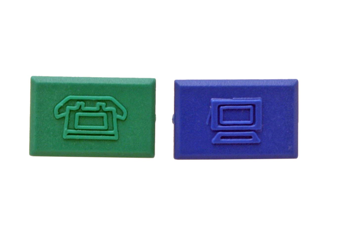 - výměnné označení zásuvky (modrý počítač, zelený telefon)