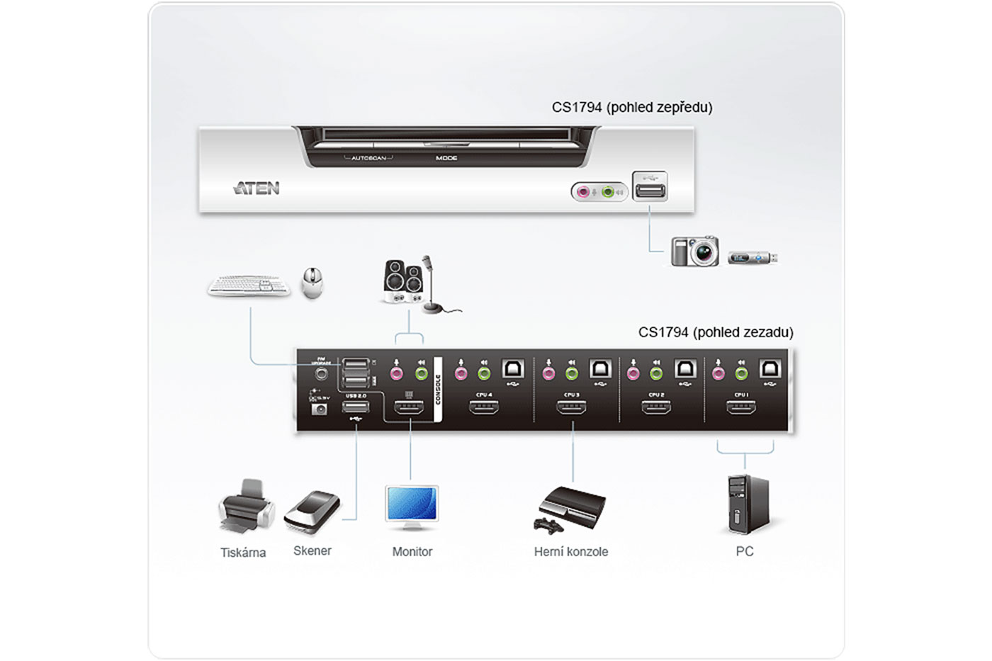 konzole klávesnice a myš: 2x USB A(F)