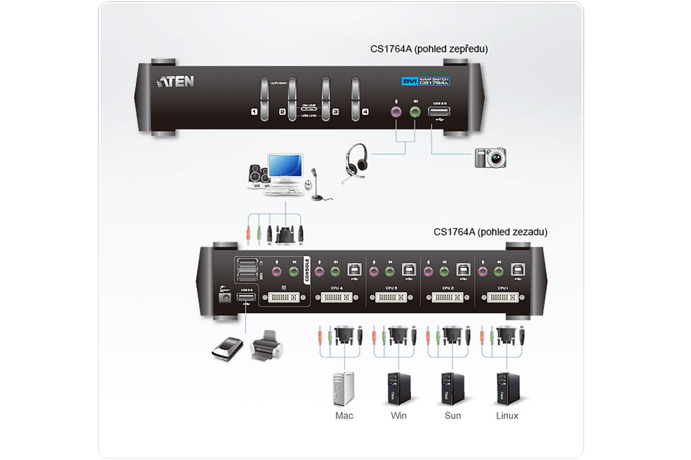 -možnost nezávislého přepnutí konzole a USB zařízení