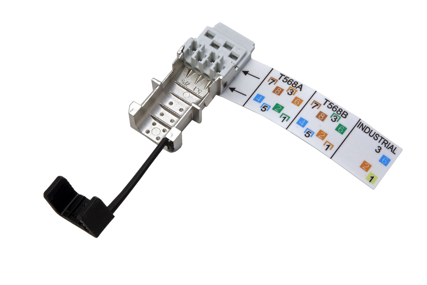 - vkládaná část pro snadnou montáž - vodiče se osadí do plastových vodítek a po zastřižení se i s oddělitelnou částí konektoru nasadí na konektor