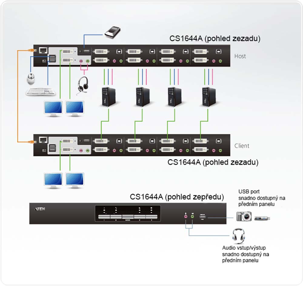 - možnost spojení 2 přepínačů pro funkci quad view (4 displeje současně)