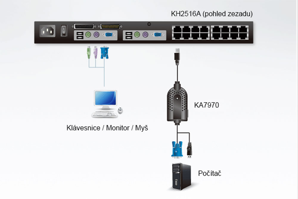Koncový modul KVM (klávesnice, video, myš) pro KVM přepínače počítačů s přenosem po TP kabelu.