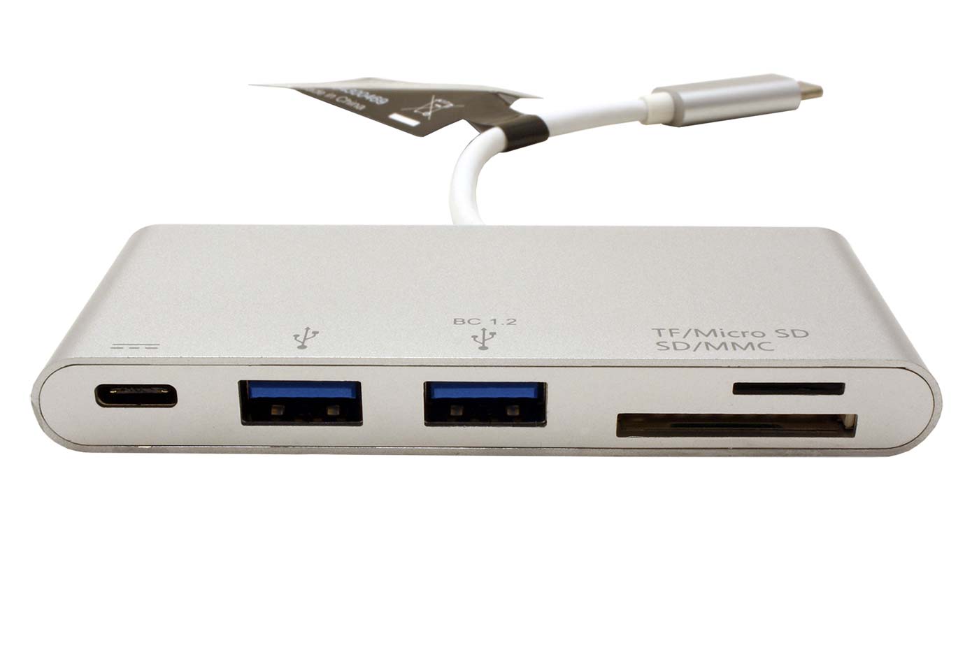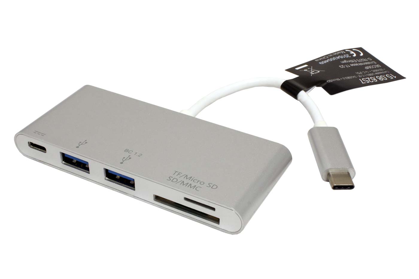 Čtečka paměťových karet s konektorem USB C. S možností připojení USB 5Gb/s (USB 3.2 Gen.1 / USB 3.0) zařízení a nabíjení přes adaptér s USB C konektorem.