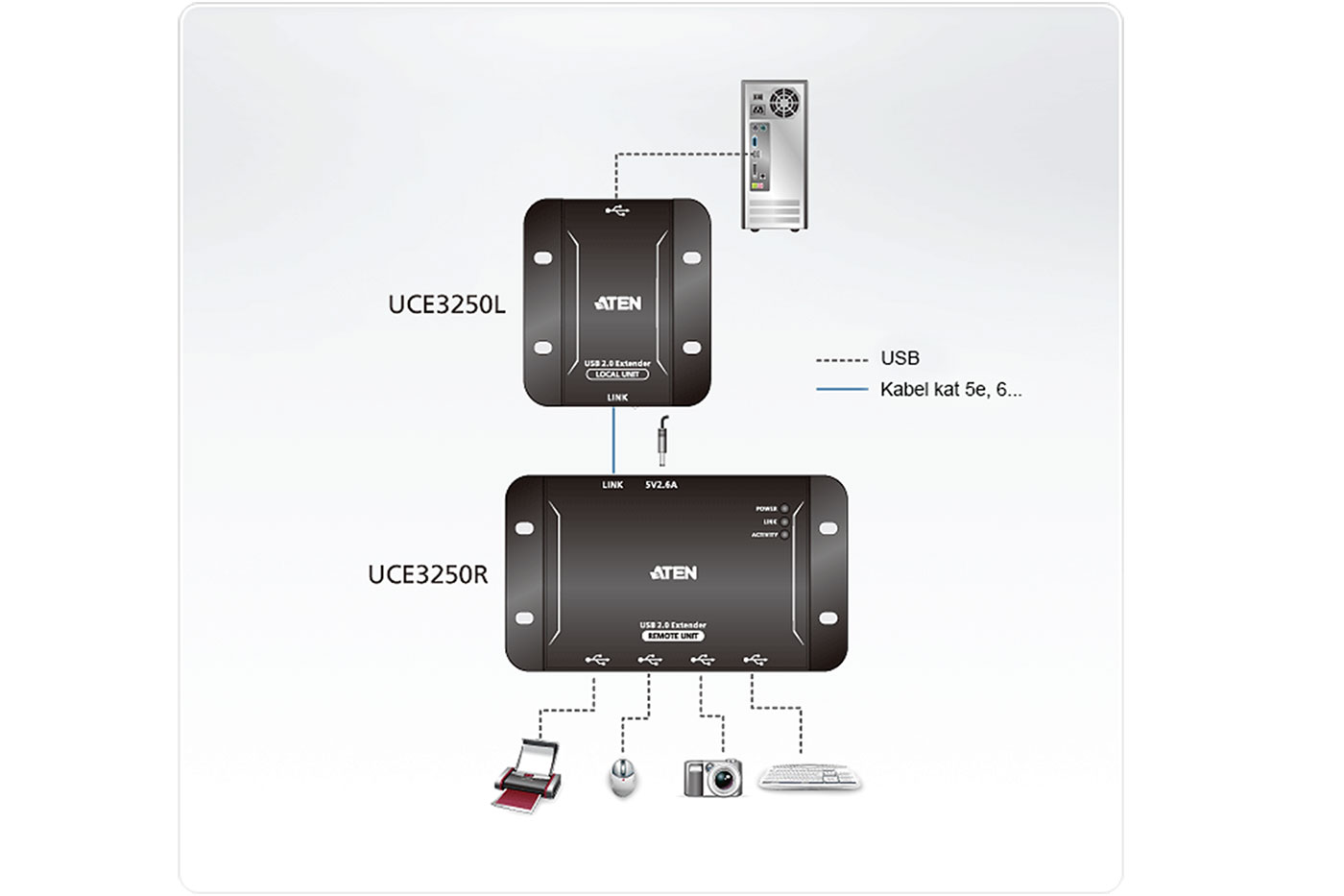 Aten Prodlužovací adaptér 4x USB 2.0 přes TP (RJ45), max. 50m (UCE3250)