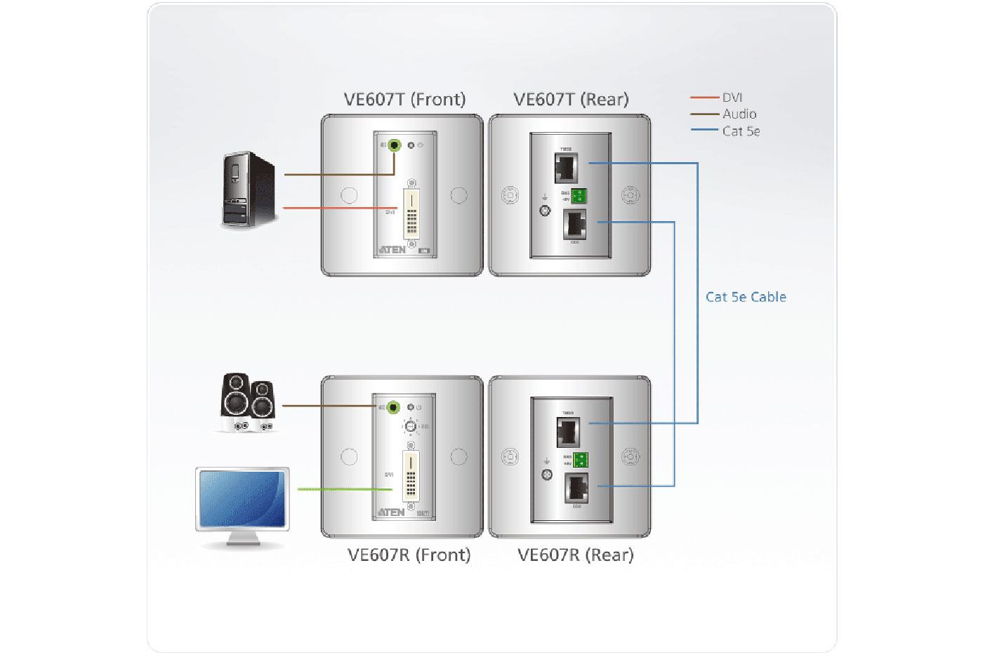Aten Prodlužovací adaptér DVI přes 2x TP, 60m, + čelo zásuvky (VE607)