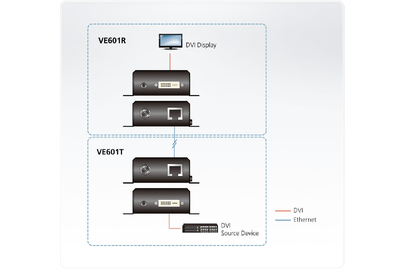 Aten Prodlužovací adaptér DVI přes TP, HDBaseT-Lite, 70m (VE601)