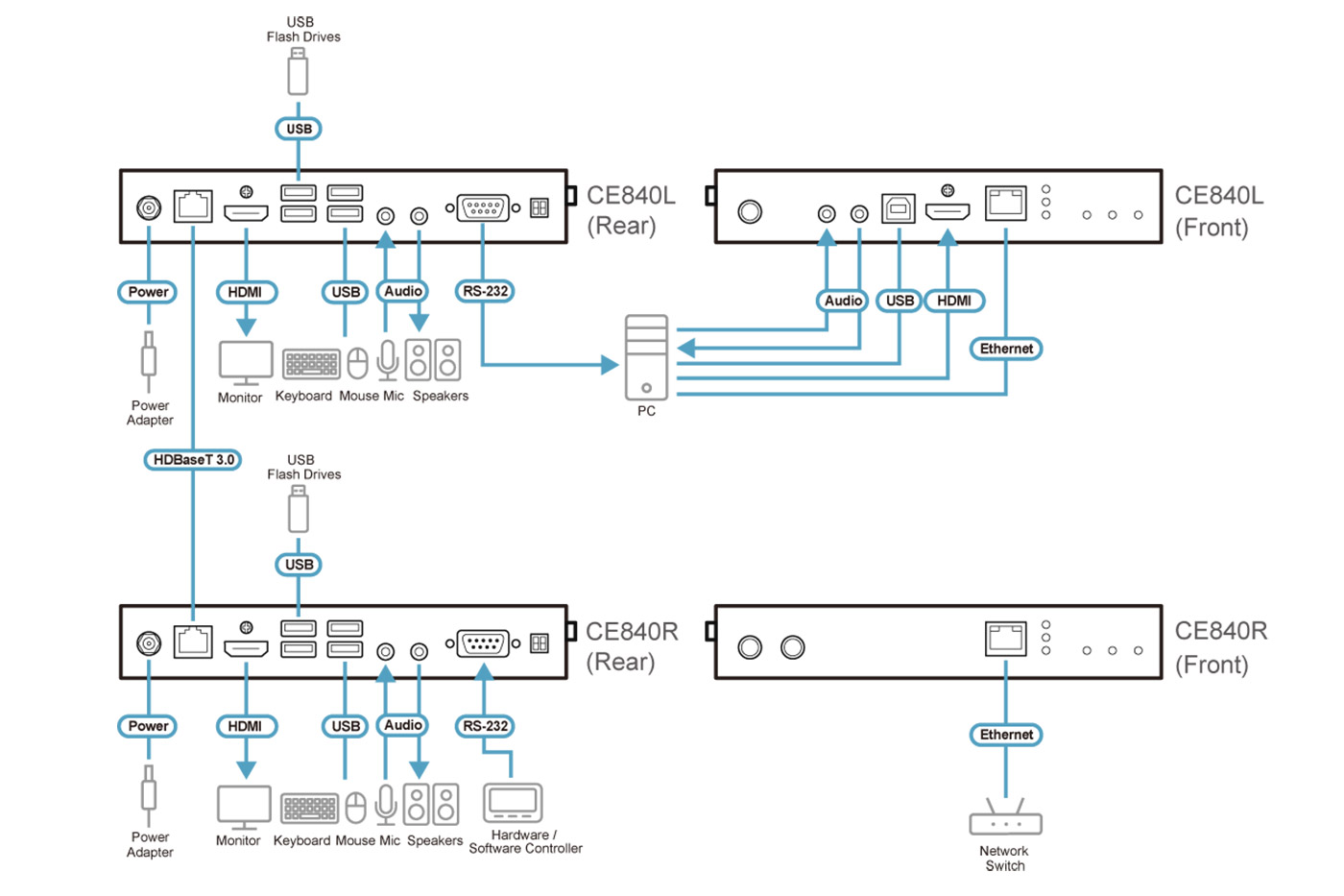 Aten Prodlužovací adaptér HDMI + Ethernet + audio + RS232 + USB 2.0, 4K@60Hz, HDBaseT 3.0 (CE840)