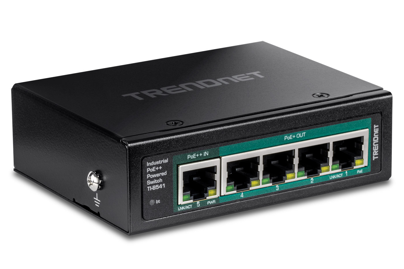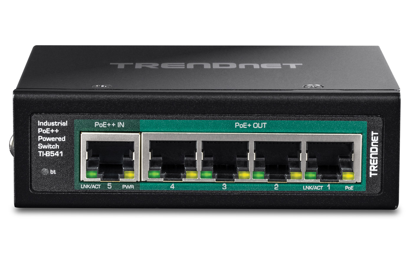TRENDnet Průmyslový ethernet přepínač 1G, 5 portů, 1x PoE++ vstup, 4x PoE+ výstup (TI-B541)