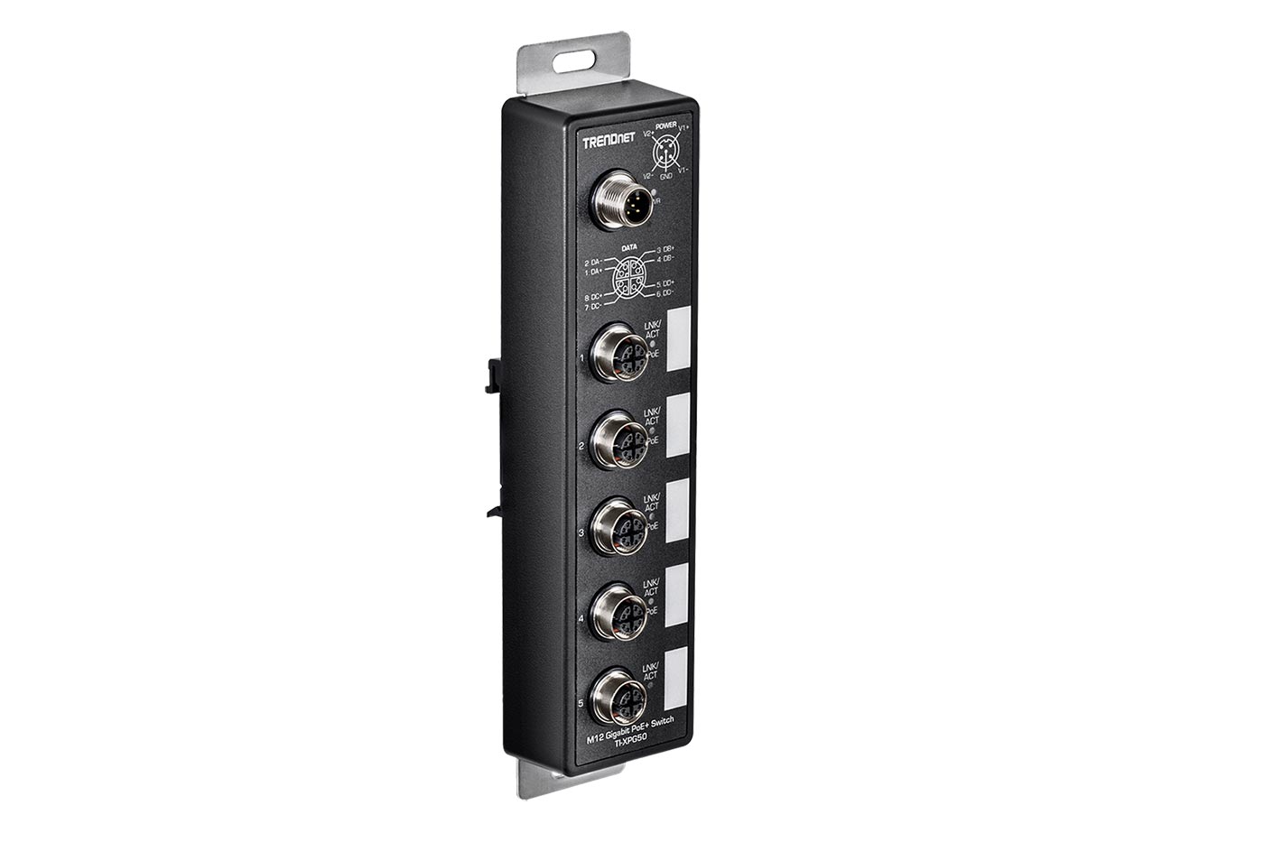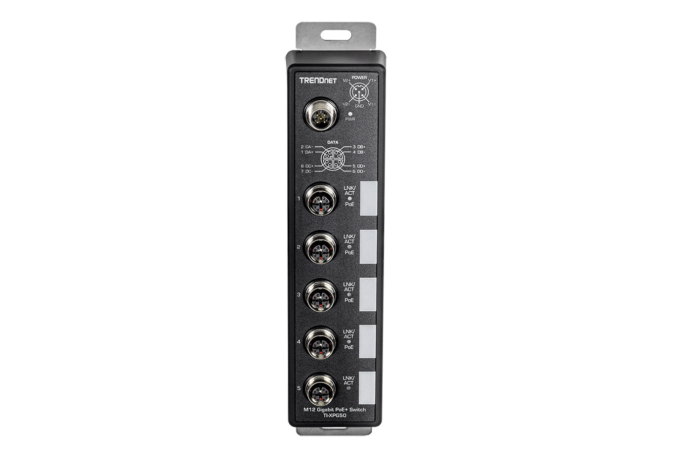 TRENDnet Průmyslový Ethernet přepínač 1Gb, 5 portů M12, 4x POE+, EN50155 (TI-XPG50)