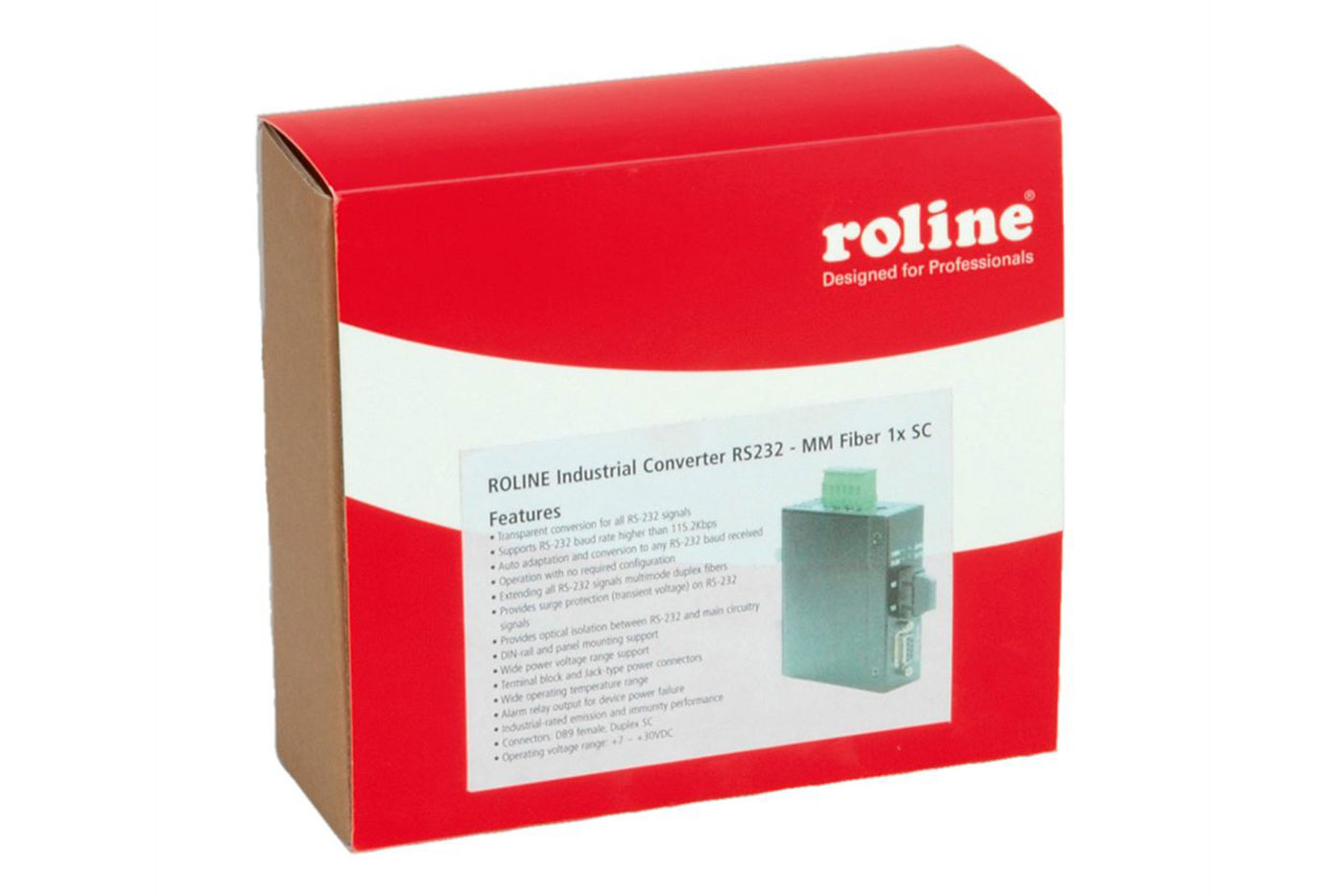 ROLINE Průmyslový prodlužovací adaptér RS232 po optickém kabelu SC, na DIN lištu