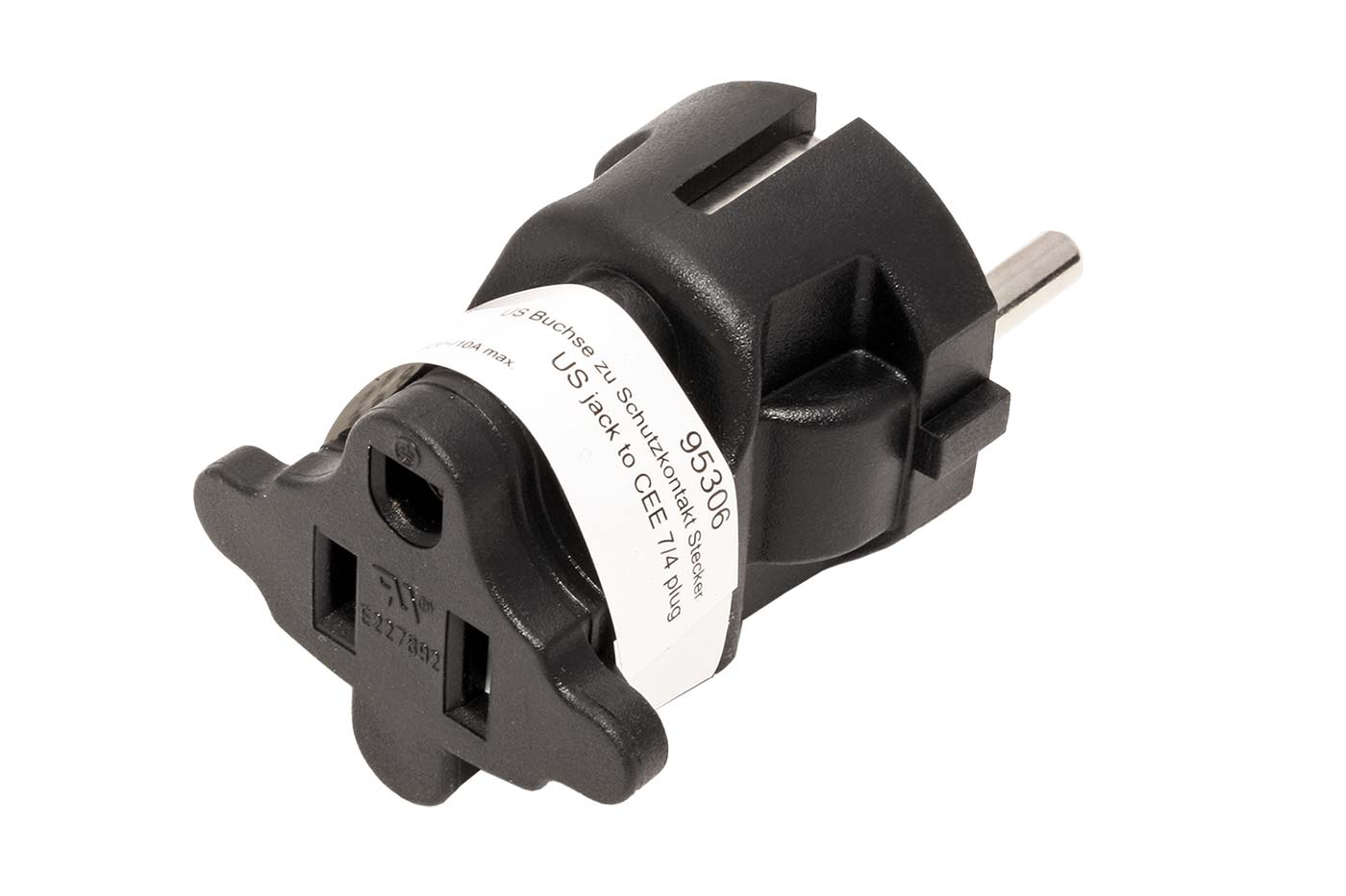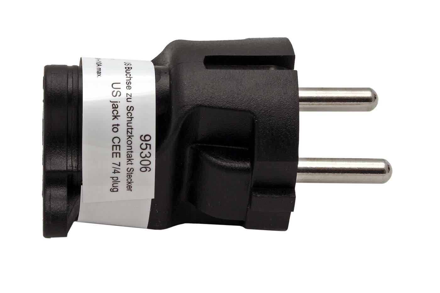 Redukce třípólové vidlice CEE 7/7 (DE, CZ, FR) na třípólovou zásuvku US.;
