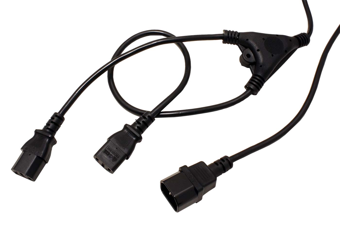 Pokud potřebujete zapojit 2 zařízení zároveň do rozvodného panelu, nebo prodloužit kabel s konektory IEC320 C15, použijte tento kabel. Na zařízení (standardní počítače, UPS…) musí být osazeny konektory IEC320 C14 (lichoběžník se svislými kontakty).