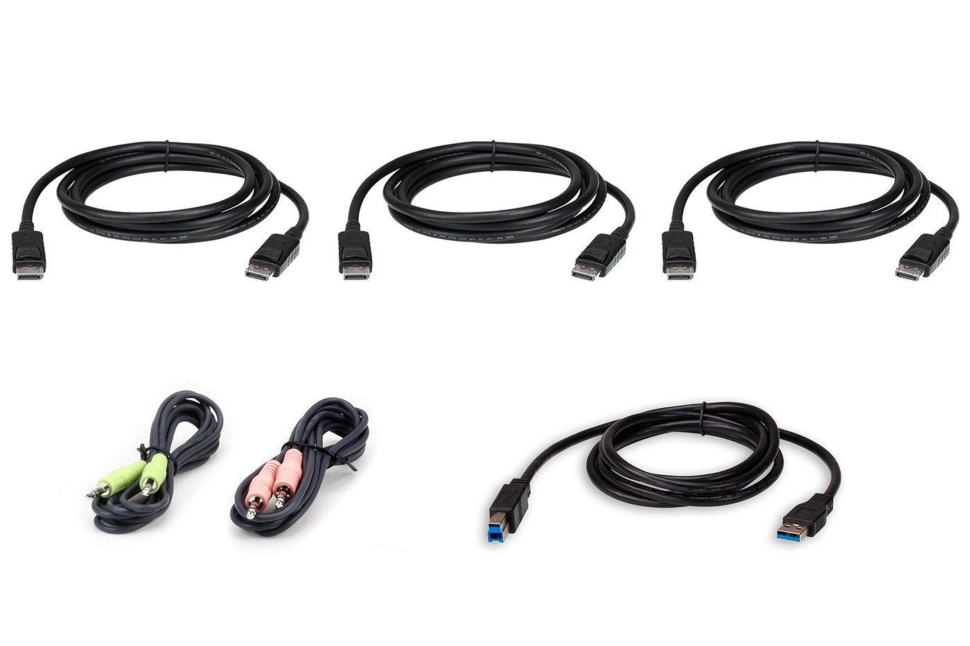 Sada kabelů určená pro KVM přepínače. Obsahuje 3x DisplayPort kabel, 1x USB 3.0 kabel A-B a 2x audio kabel jack 3,5mm.;