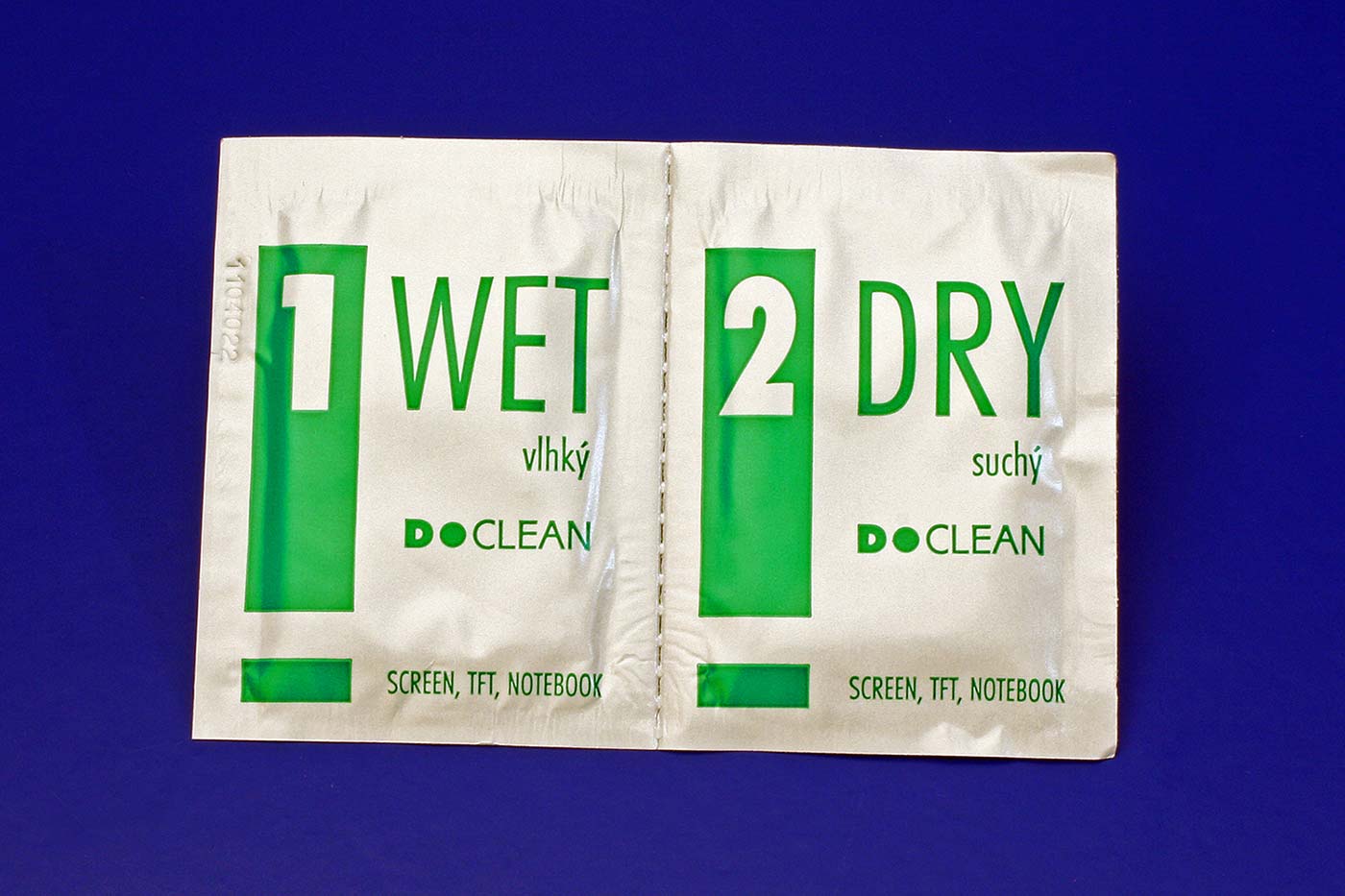 Vlhké čistící utěrky na LCD obrazovky, PDA… + suché hydraspunové utěrky.
