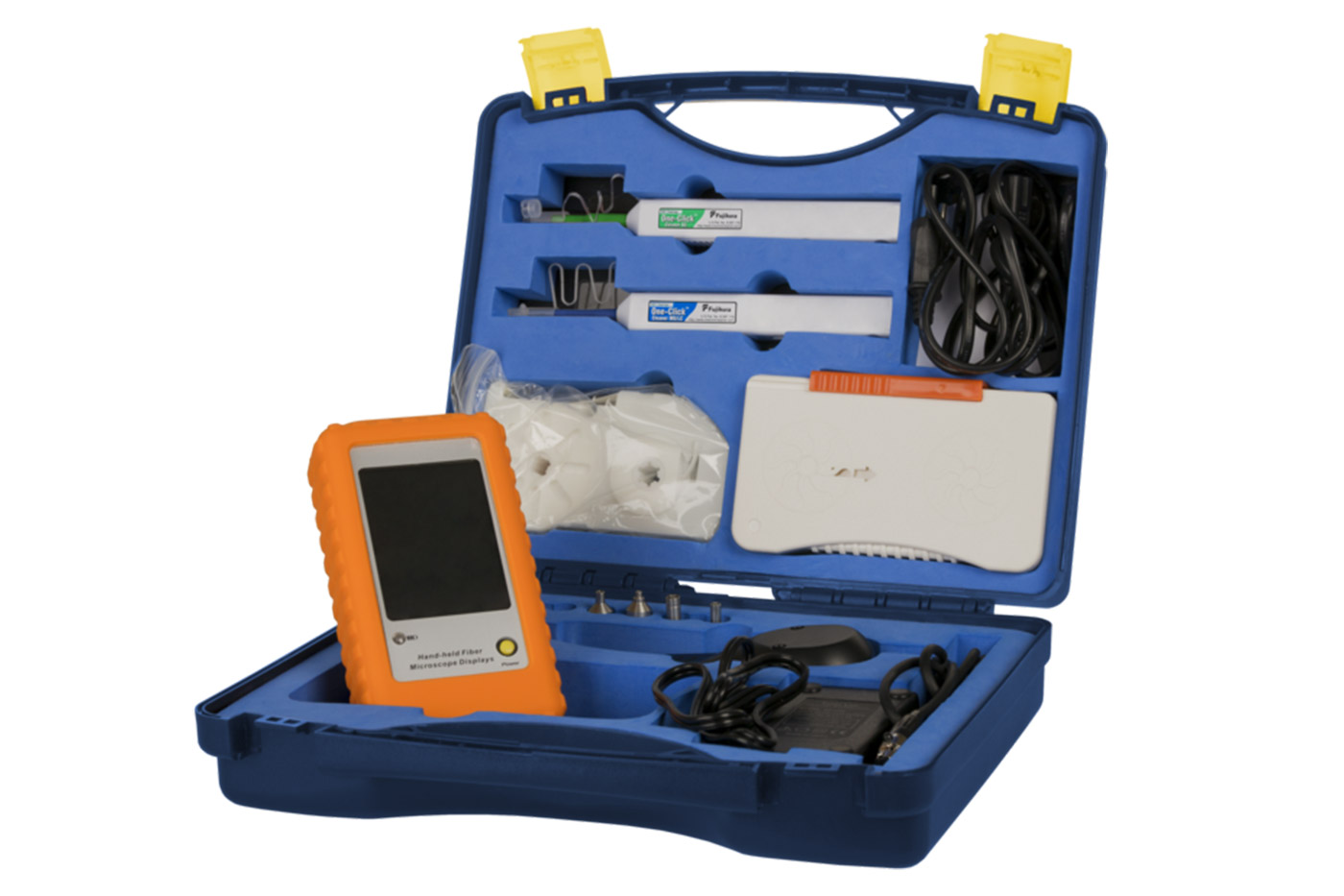 - Mikroskopická kamera a LCD monitor pro rychlou a snadnou kontrolu a vyhodnocení čelních ploch na konektoru a v adaptéru.