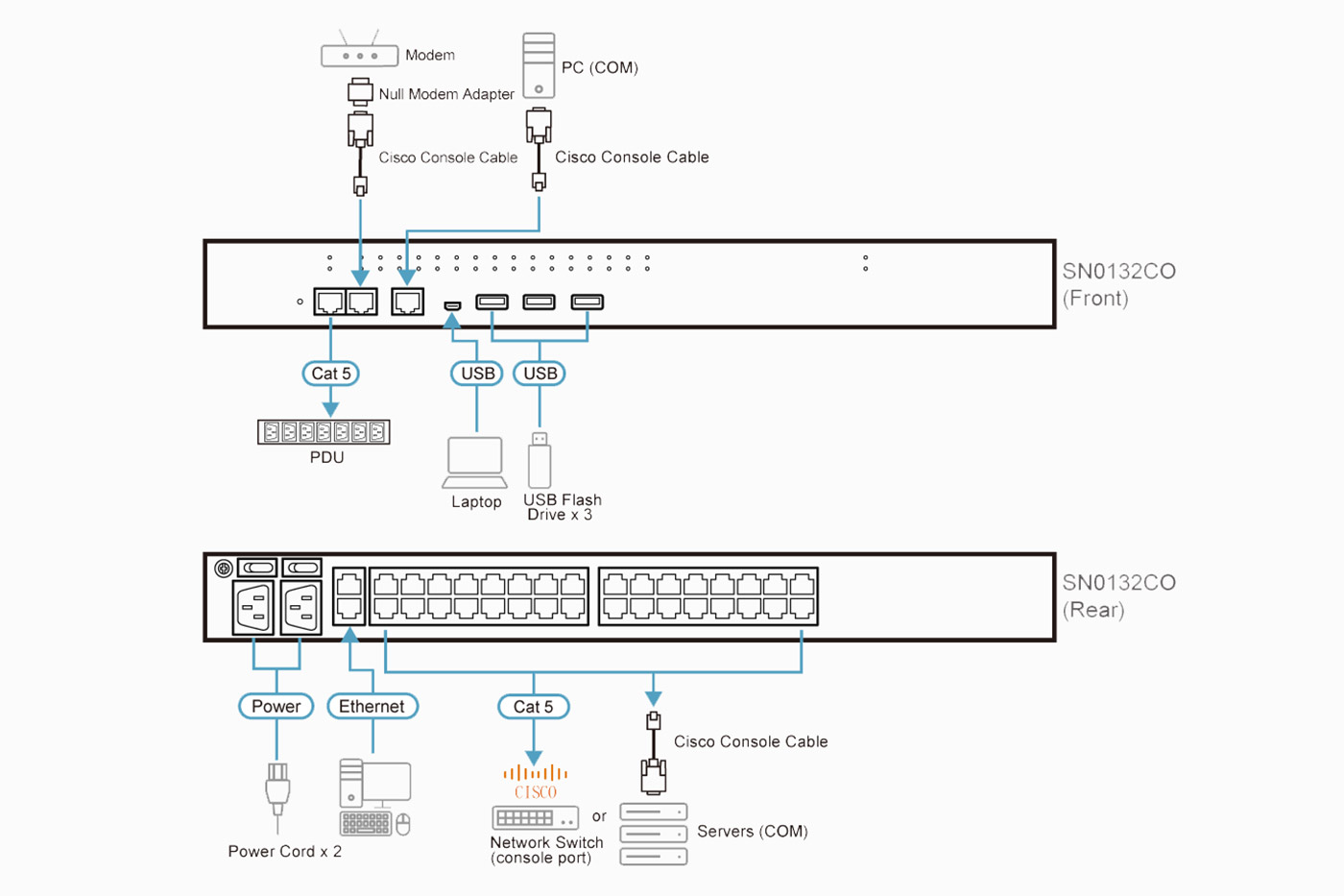 Umožňuje přístup k sériovým zařízením (jako jsou ethernet přepínače, routery, servery …) umístěným v datových centrech nebo na vzdálených místech. Řada SN01xxCO je pinově kompatibilní s Cisco zařízeními.;