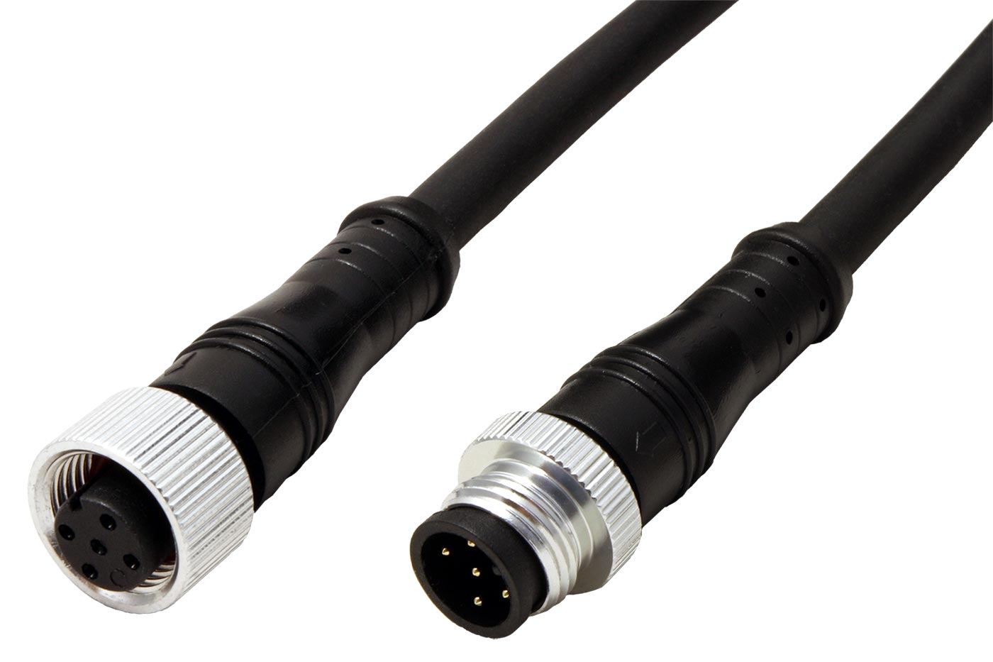 Prodlužovací kabel s kulatými 5 pinovými konektory se šroubovým upevněním M12. Kód A.;