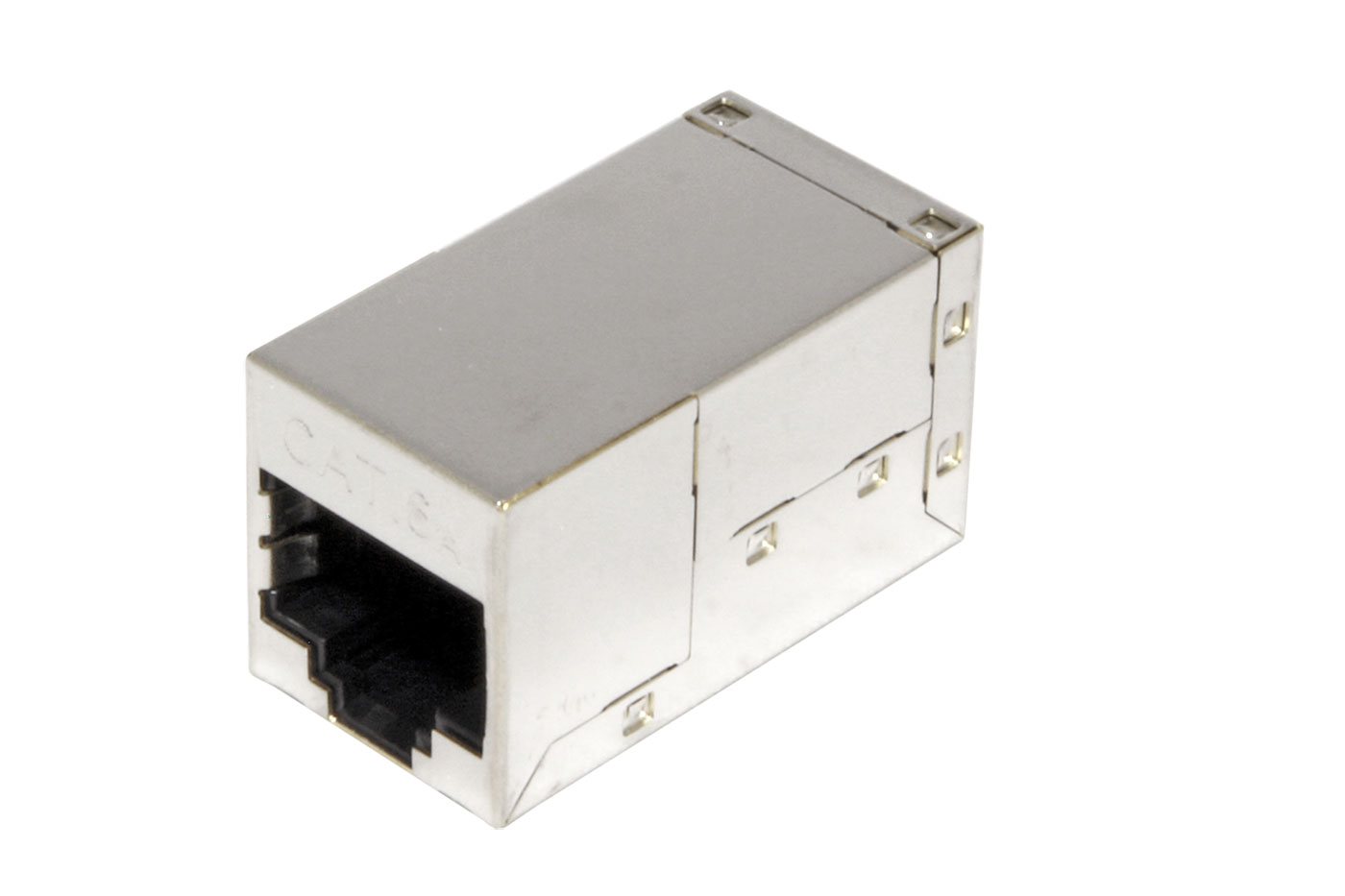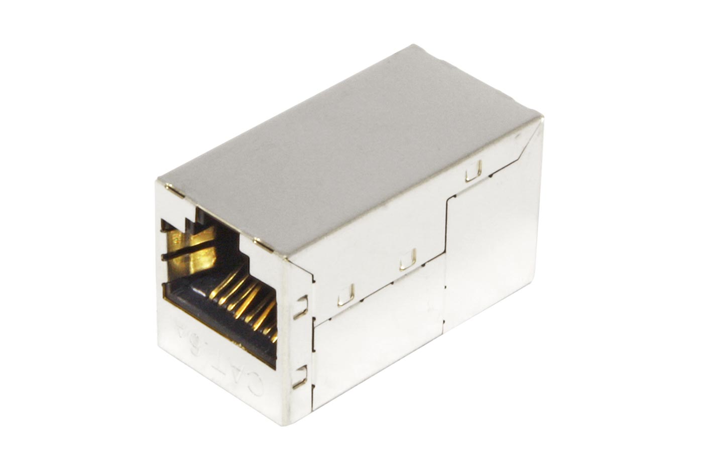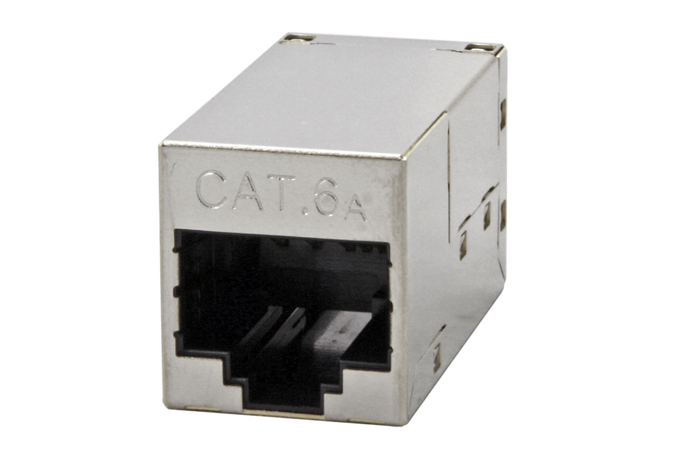 Stíněný prvek umožňující spojení 8-žilových kabelů kategorie 6a s osazenými konektory RJ45.;