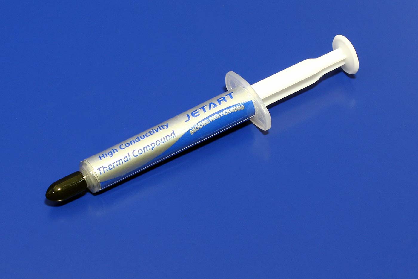 Stříbrná teplovodivá pasta na chladiče CPU.
