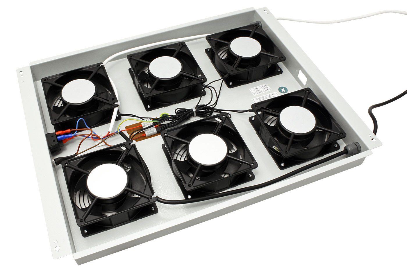 Ventilační jednotka zajišťující aktivní chlazení rozvaděčů. Je určena především pro serverové a síťové rozvaděče ROLINE řady Pro. Jednoka je vybavena termostatem pro přesnou regulaci teploty uvnitř rozvaděče a vypínačem.
